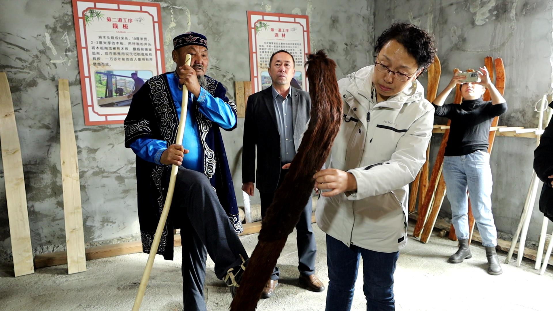 当天,青年设计师们走进阿勒泰市汗德尕特蒙古民族乡民俗馆、墩德布拉克洞穴彩绘岩画区及阿勒泰达那外贸有限公司、拉斯特乡古老毛皮滑雪板制作工坊、阿勒泰臻玉堂非遗宝石画展览馆,通过听取讲解、实地观摩等方式,详细了解了阿勒泰市丰富的自然资源、悠久的历史文化和传统民俗文化。