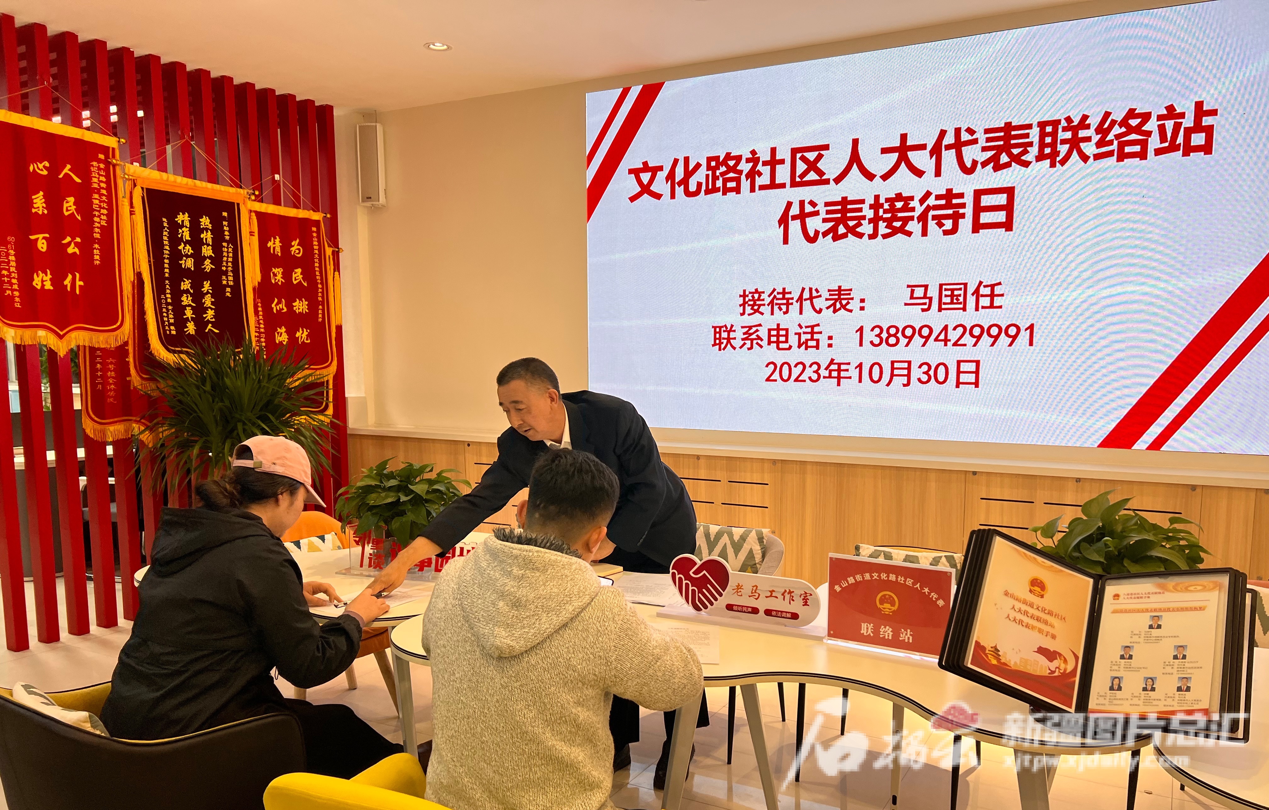10月31日,阿勒泰市人大代表马国任在人大代表联络站接待群众。石榴云/新疆日报记者 米日古力·吾摄