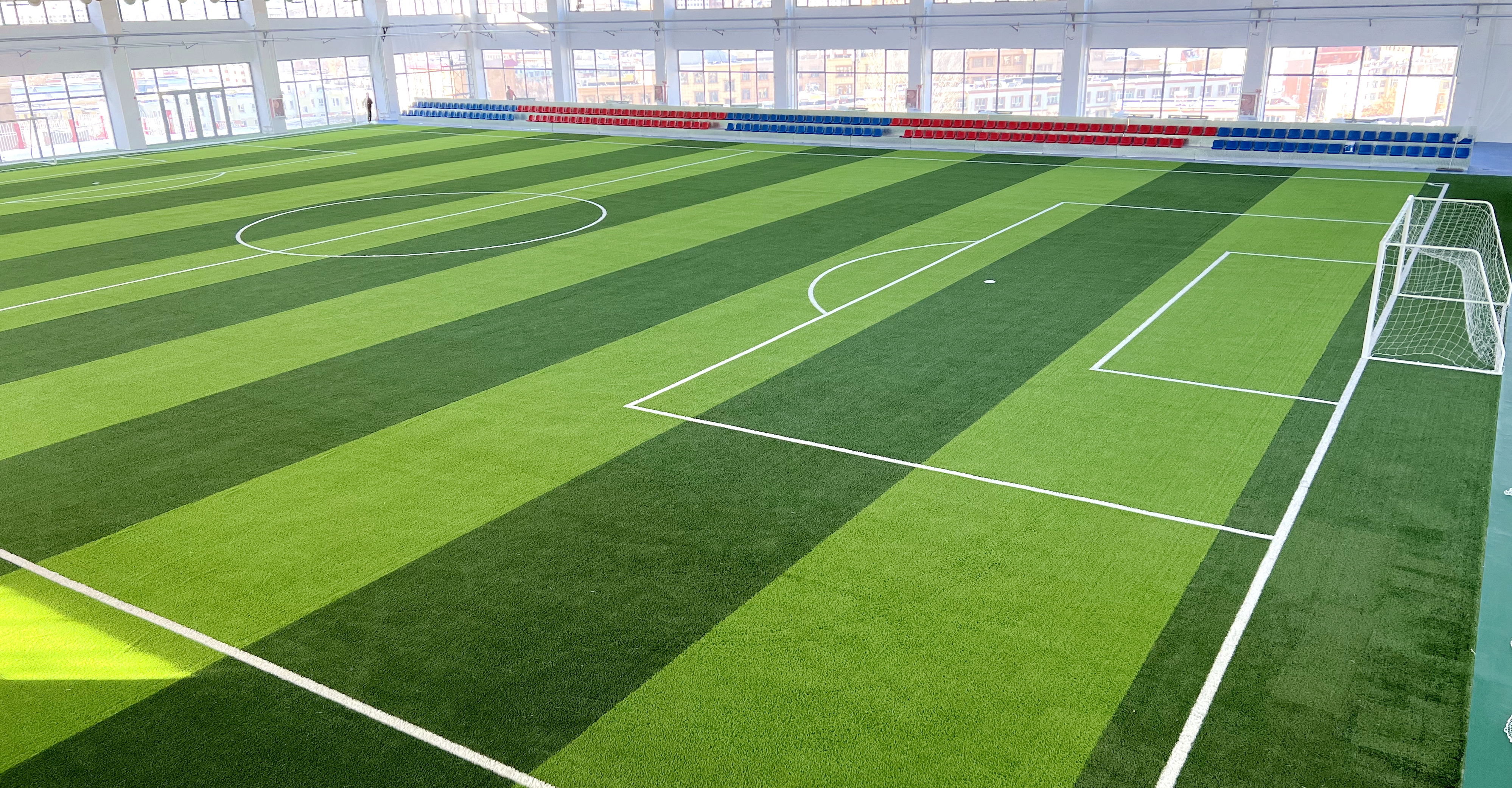 12月11日,记者来到位于阿勒泰市解放路社区西侧的阿勒泰市青少年体育培训基地建设项目的现场,只见基地的大楼已建设完毕,大楼里的足球场也已完成铺设。