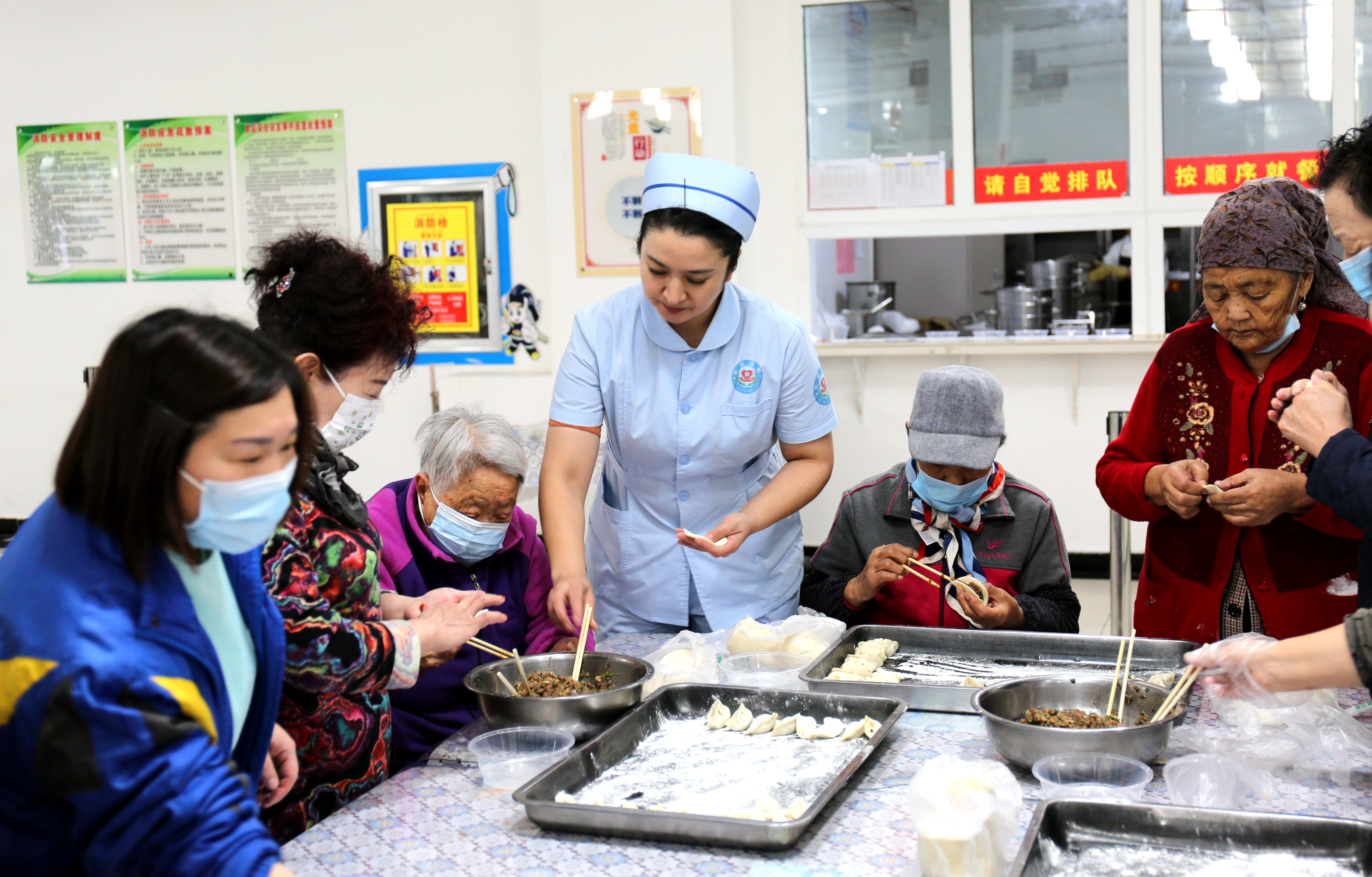 老人们在家人的陪伴下,与康养中心医护人员一起包饺子、唠家常。“好吃不过饺子香,温暖不过集体爱。”老人赵风珍感慨地说。
