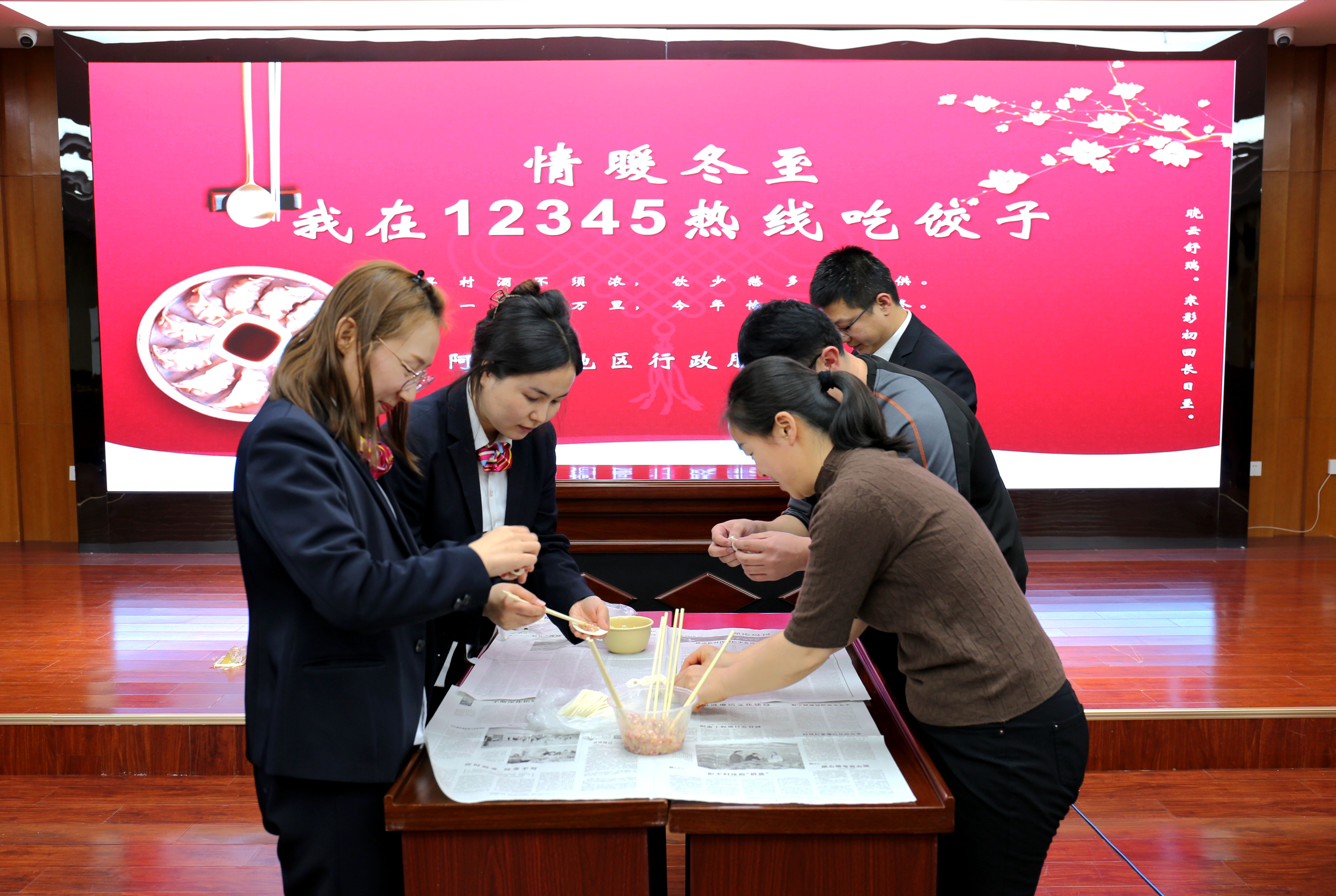 12月21日,地区行政服务中心开展“情暖冬至 我在12345热线吃饺子”活动。