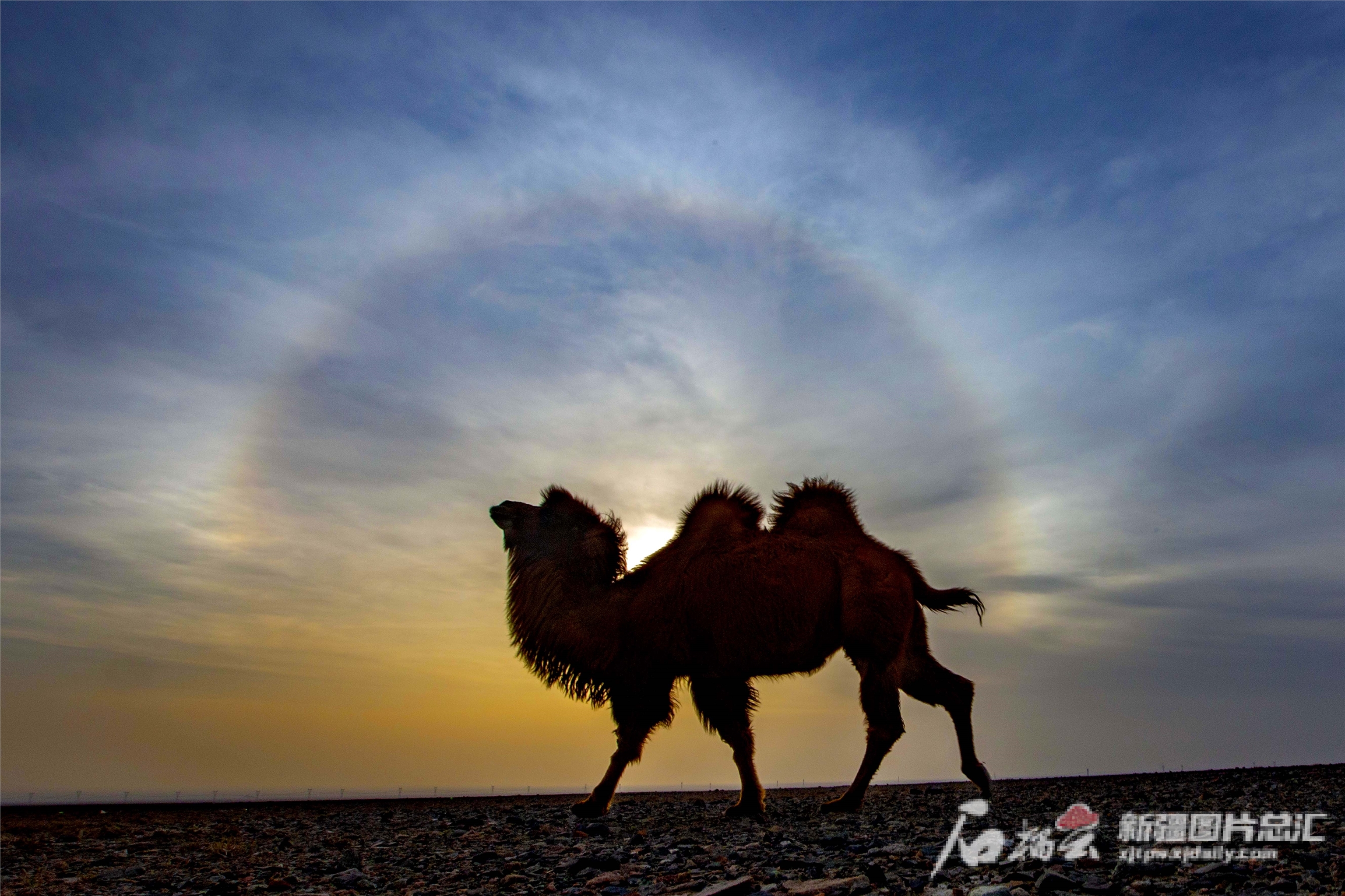 2022年3月9日,在哈密市北部的戈壁上拍摄的驼峰日晕景观。石榴云/新疆日报记者 蔡增乐摄
