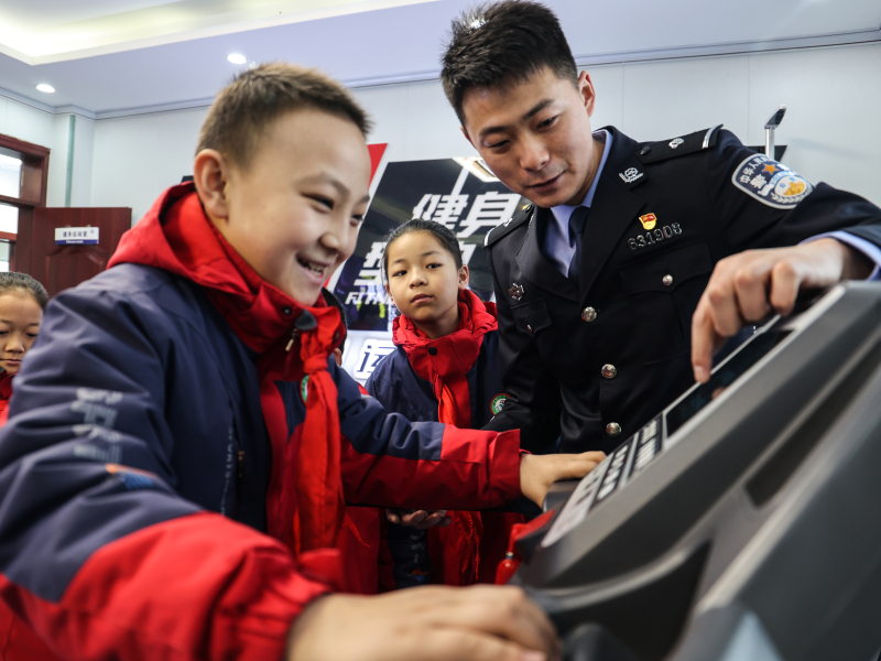 1月7日,在第四个中国人民警察节来临之际,新疆阿勒泰边境管理支队恰尔夏特边境检查站举办警营开放日活动,邀请吉木乃县直小学的“小石榴籽”们走进警营,“零距离”感受别样警营生活,共庆警察节。