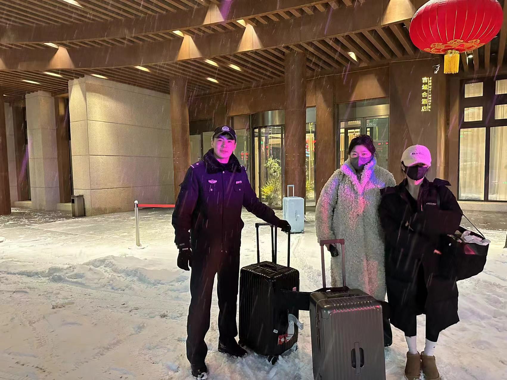 此时室外温度近零下20余度,3组内地旅客因未约到租车、网约车,在航站楼外的寒风中向阿勒泰地区公安局机场分局执勤警员求助,分局立刻安排执勤车辆和备勤民辅警驾驶私家车将滞留旅客分别送往美豪、金都等三处酒店,传递公安温暖,得到旅客真情点赞。