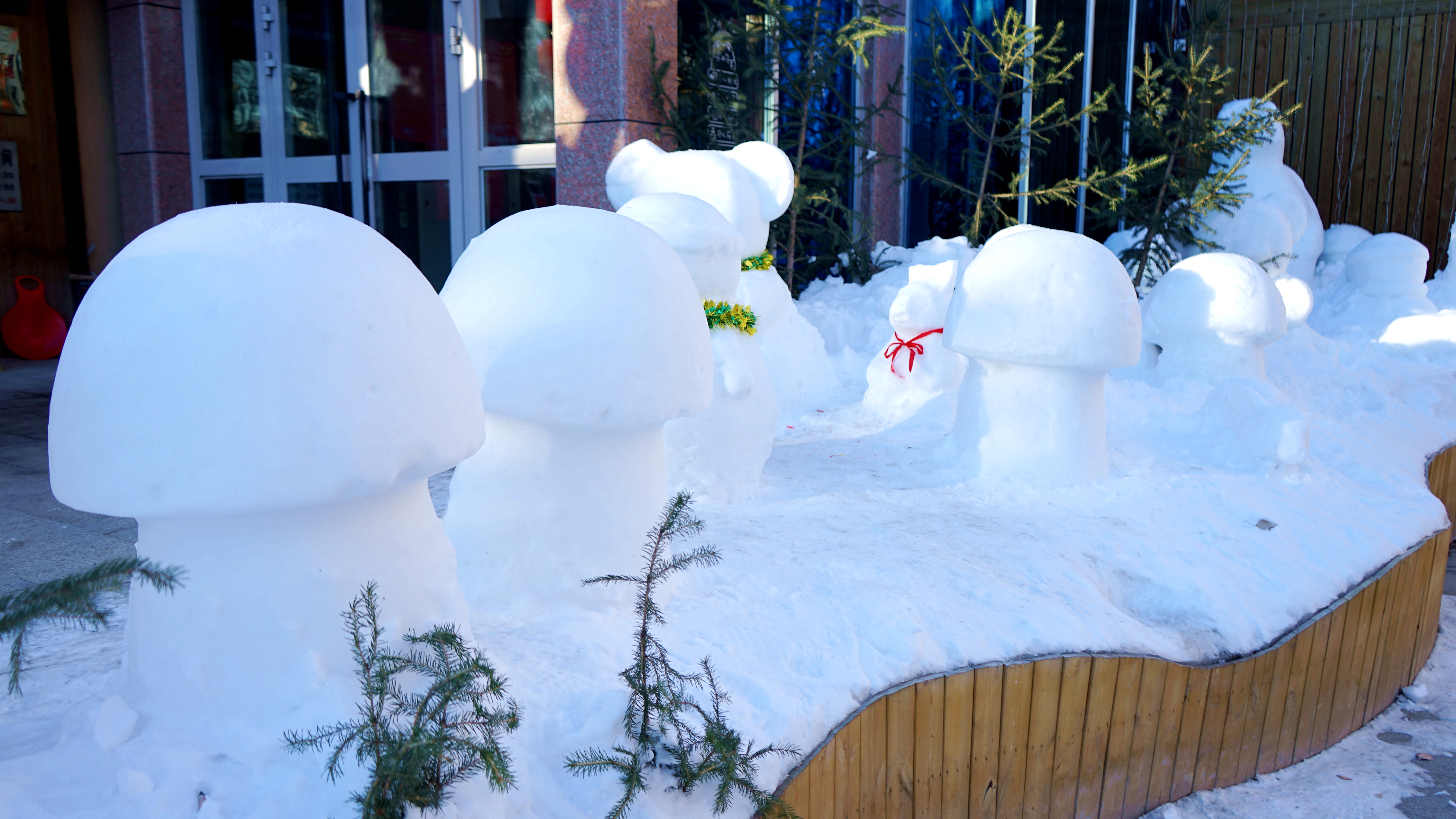 1月22日,在阿勒泰市桦林公园门口有一群萌萌的雪蘑菇,安静地站在那里。狄文琦 摄