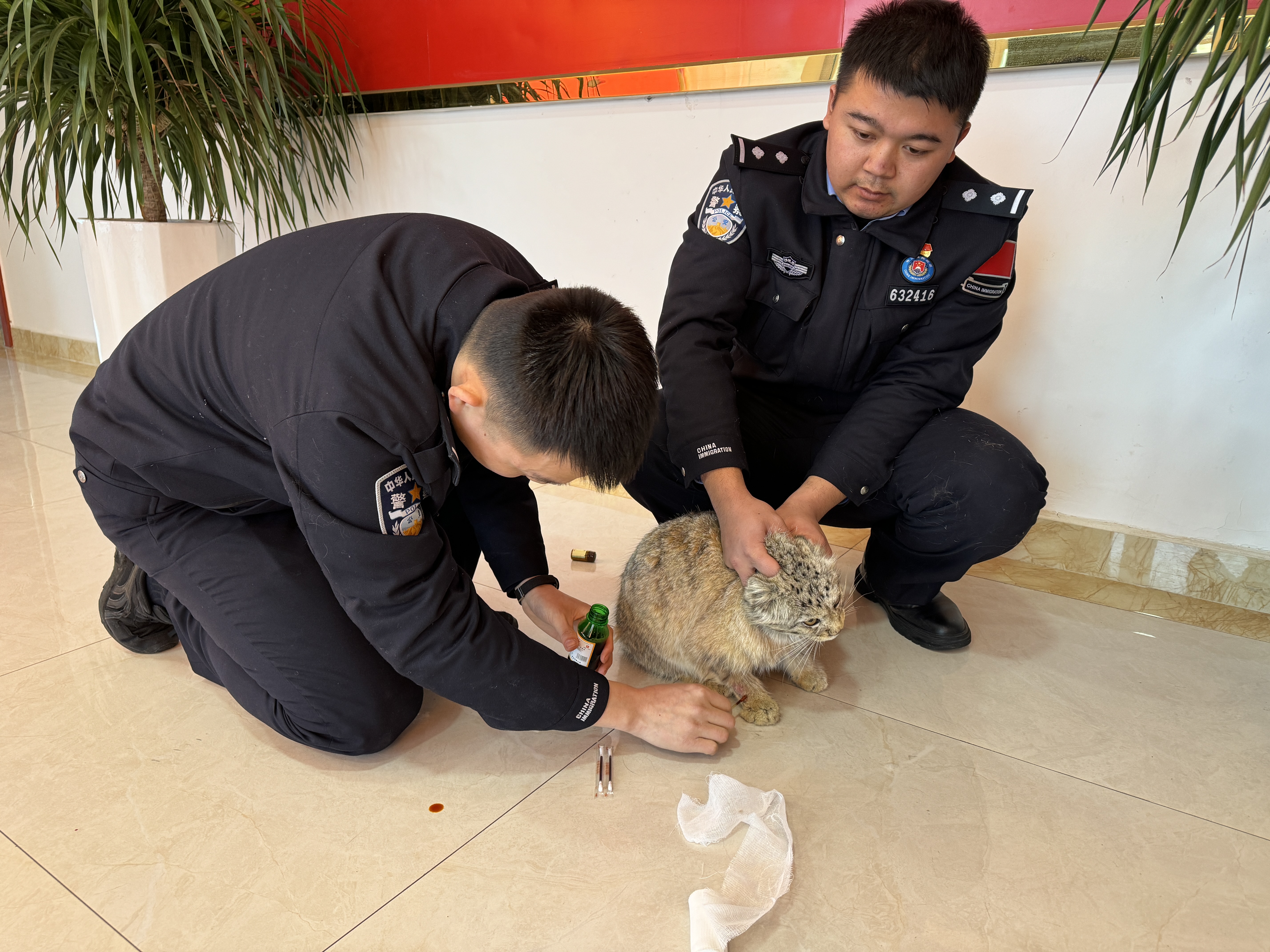 随后,民警将其带至派出所进行消毒处理。经比对,确认该动物为国家二级野生保护动物兔狲。目前,受伤兔狲已移交至阿勒泰食药环分局福海林业派出所接受进一步治疗,待其康复后将放归自然。