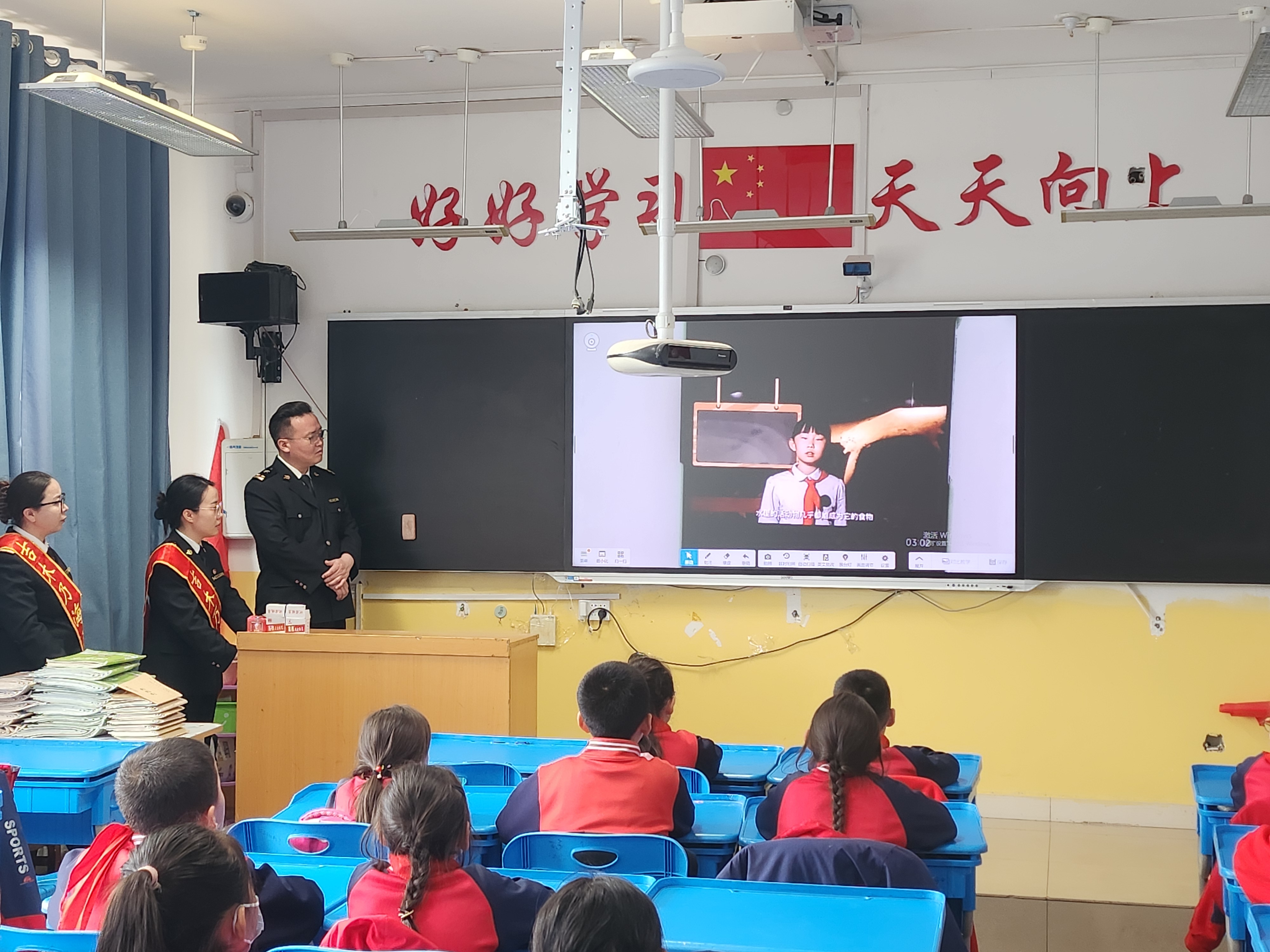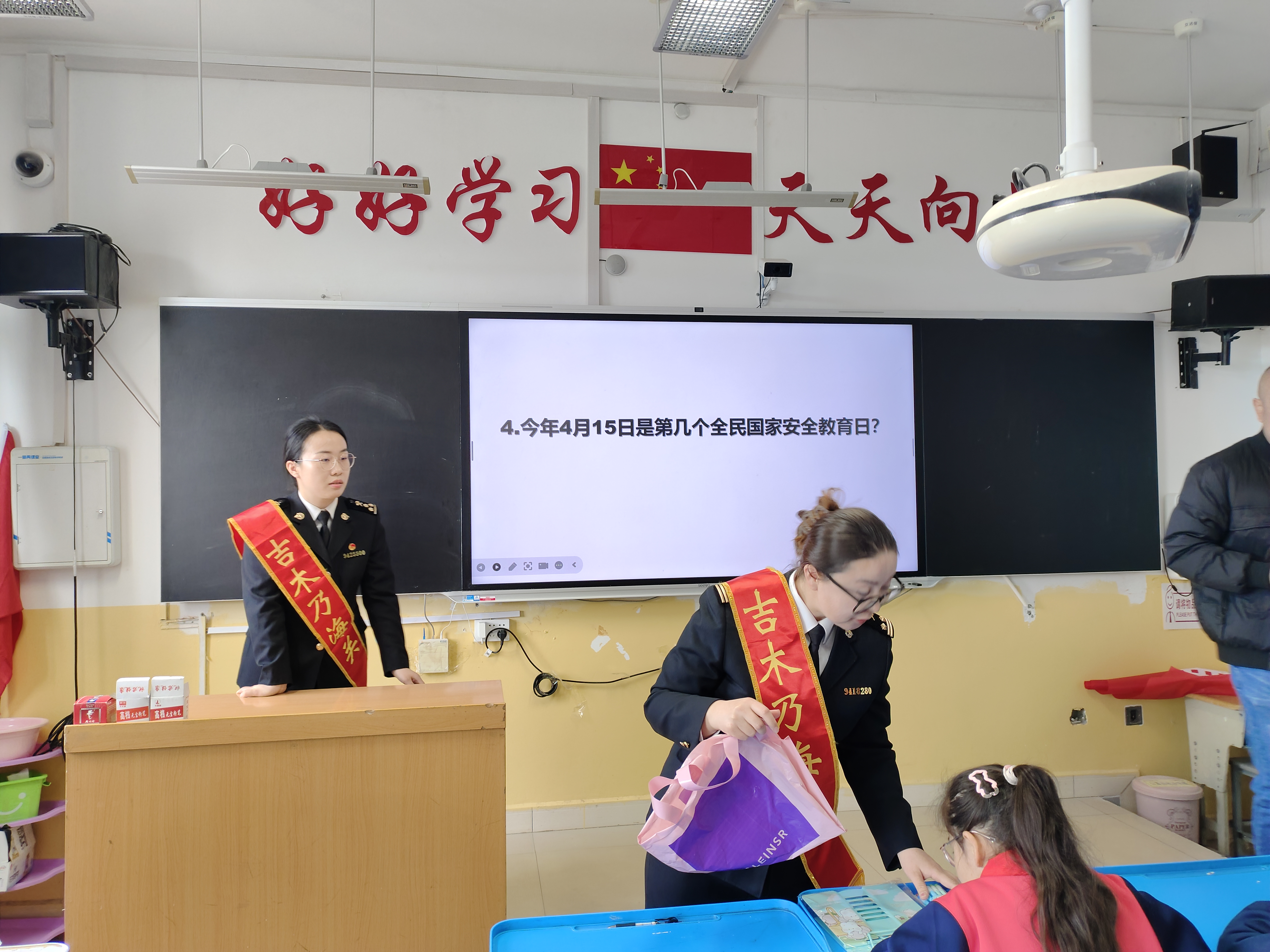 4月12日,乌鲁木齐海关所属吉木乃海关关员走进吉木乃县直小学开展“守护国门安全 共建美好家园”国门生物安全进校园活动。通讯员 贺理莎 摄
