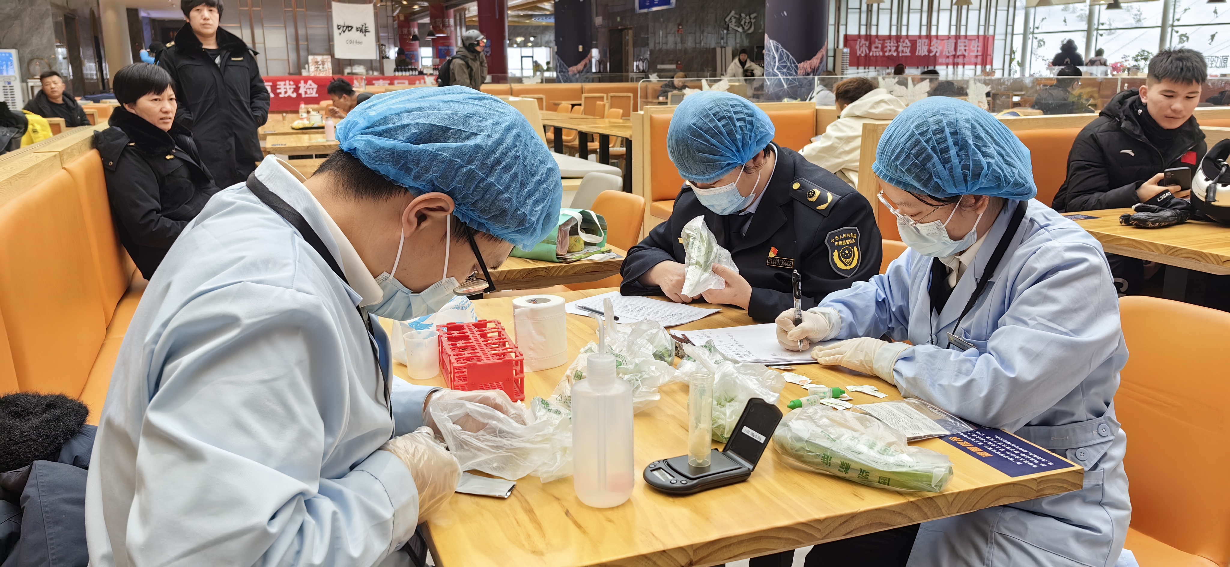 地(市)两级市场监督管理局工作人员正在对餐饮企业的食材开展现场抽检 胡俊秀 摄