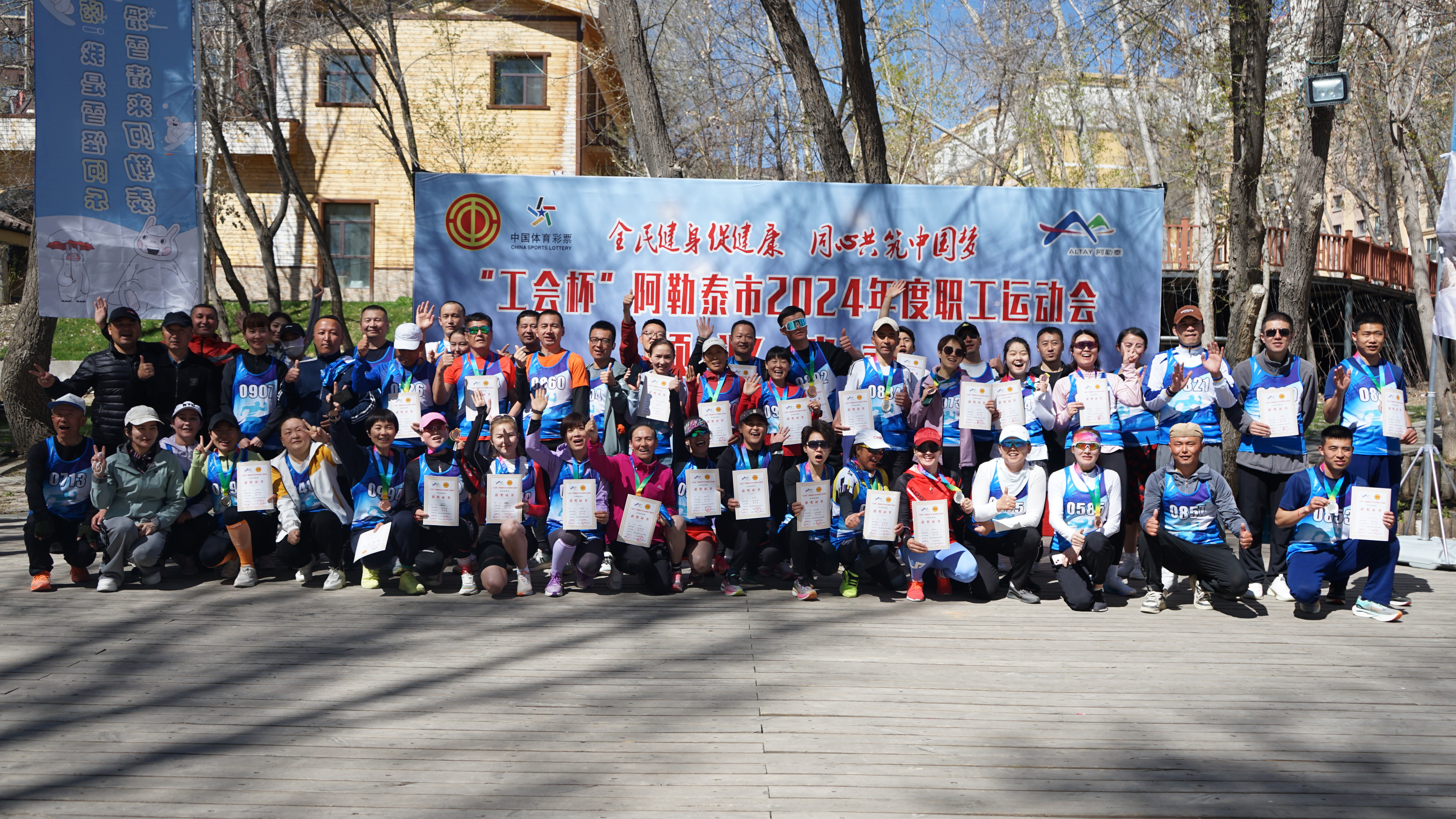 4月28日,在“工会杯”阿勒泰市2024年度职工运动会环城健康跑比赛结束后,获奖人员合影留念。