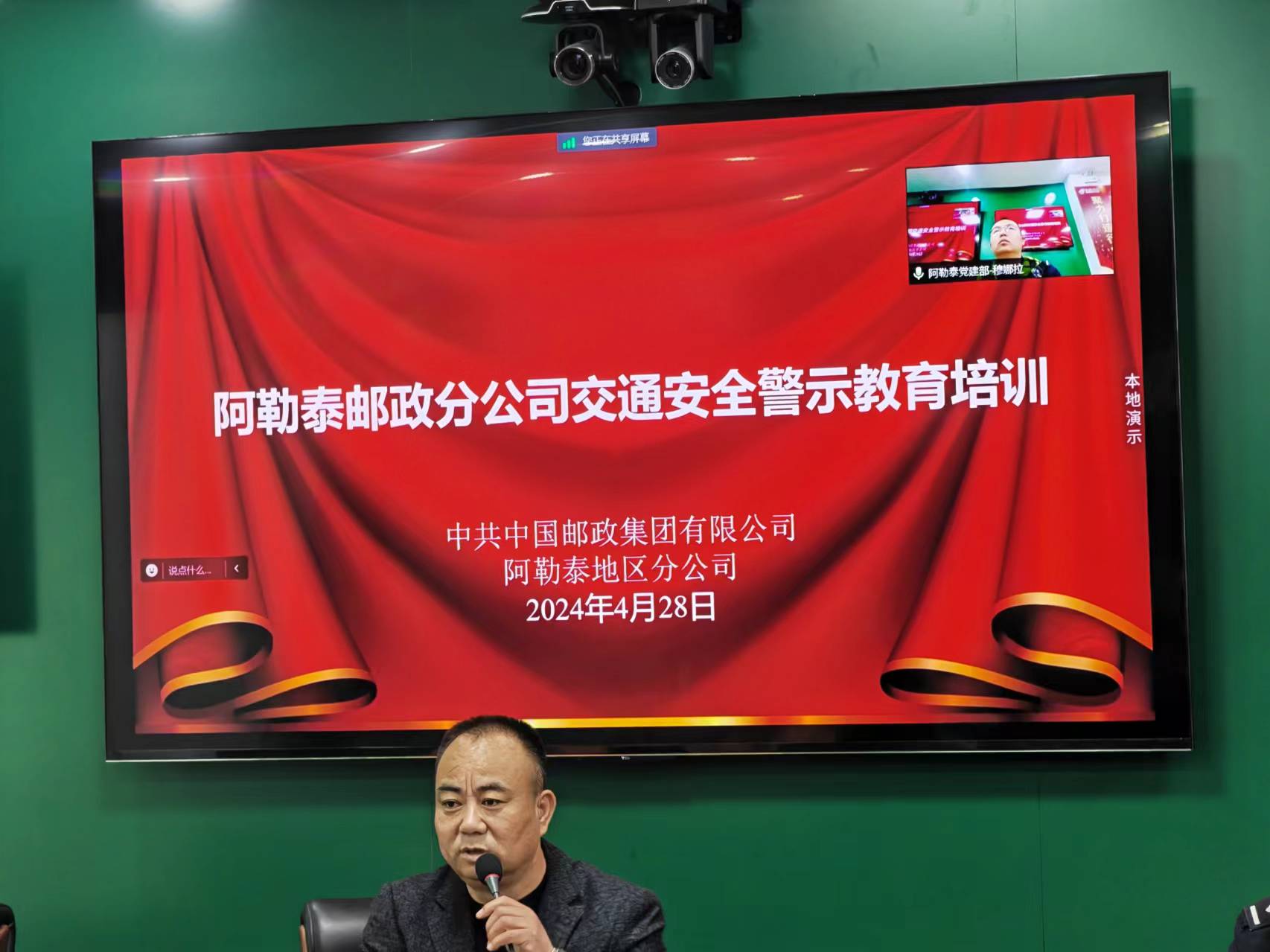 阿勒泰新闻网-阿勒泰地区融媒体中心(记者 阿丽娜·阿依登)5月9日,中国邮政集团有限公司阿勒泰地区分公司特邀阿勒泰市公安局交警大队民警,举办交通安全警示教育培训,此次培训以视频方式覆盖各县(市)邮政网点和邮区中心。