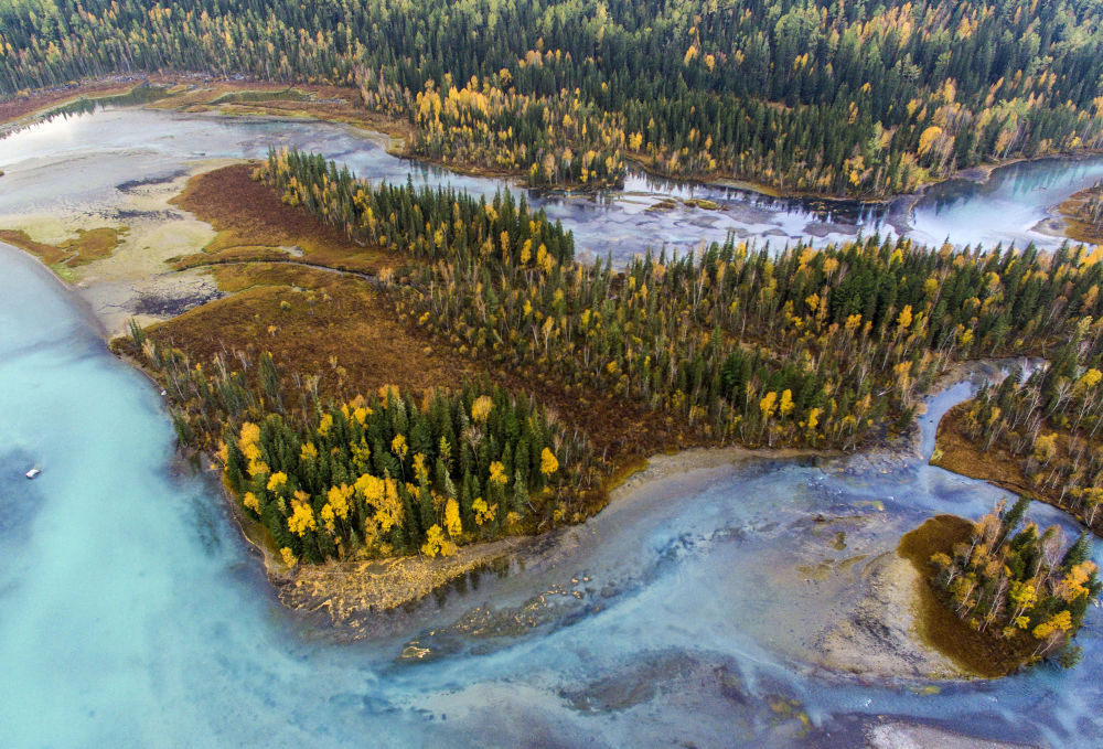 无人机拍摄的新疆喀纳斯景区风光。 新华社记者 王菲 摄