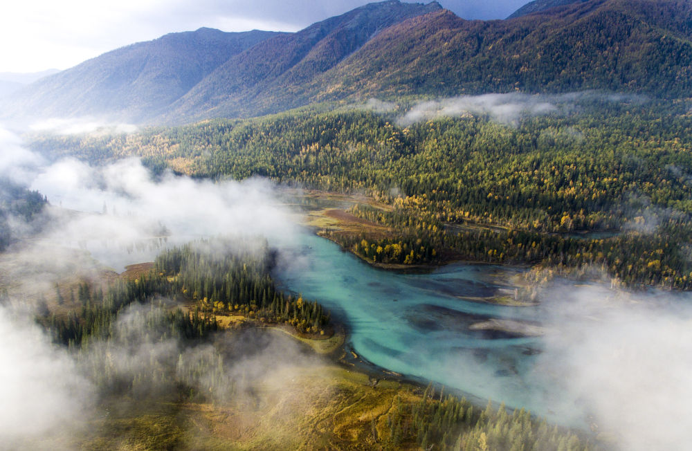 无人机拍摄的新疆喀纳斯景区风光。新华社记者 王菲 摄