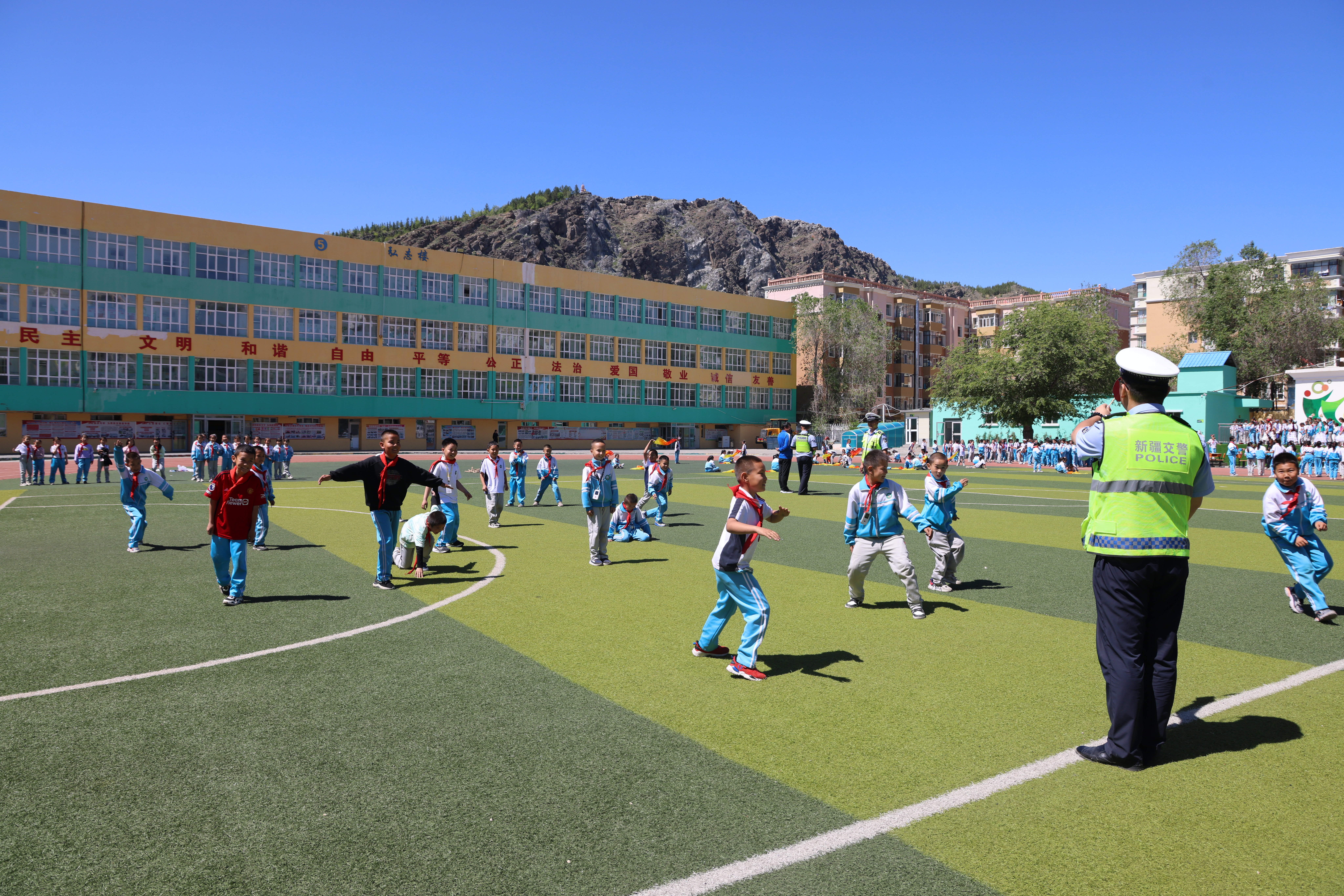 阿勒泰新闻网-阿勒泰地区融媒体中心(记者 古丽娜 通讯员 周涛)“这些指挥手势可真酷!”“长大后,我也要当警察……”5月29日,阿勒泰市公安局组织民警来到阿勒泰市中心小学开展“警心润童心、平安伴童行”主题活动,让孩子们度过一个知识满满、爱心暖暖的节日。