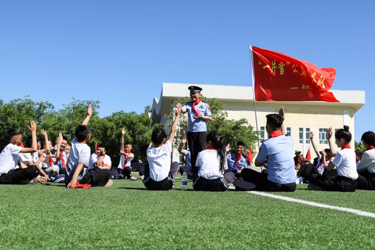 5月30日,新疆阿勒泰边境管理支队老吉木乃边境派出所联合吉木乃口岸边境派出所、恰勒什海边境派出所“一片雪”公益服务队来到兵团第十师一八六团中学,为学生们送去学习用品和普法教育套餐,通过开展趣味游戏互动,和学生们共同庆祝“六一”儿童节。