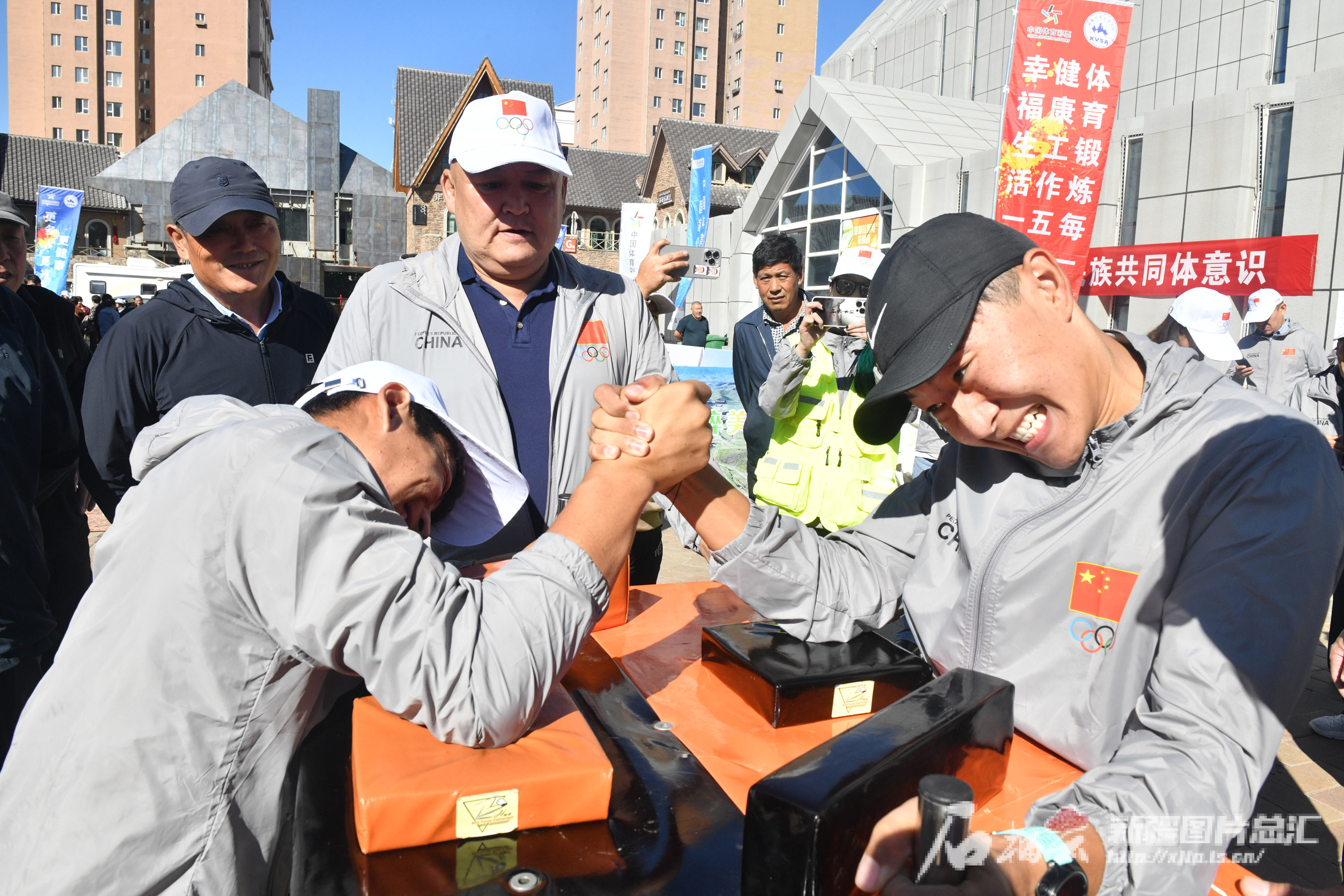 9月10日,露营大会上,选手在参加掰手腕比赛。