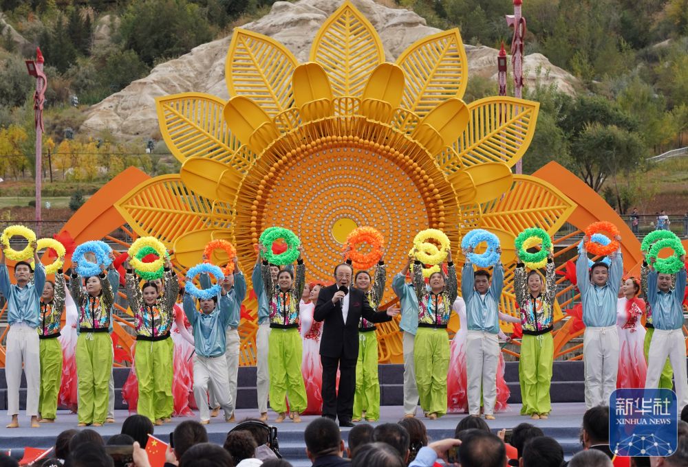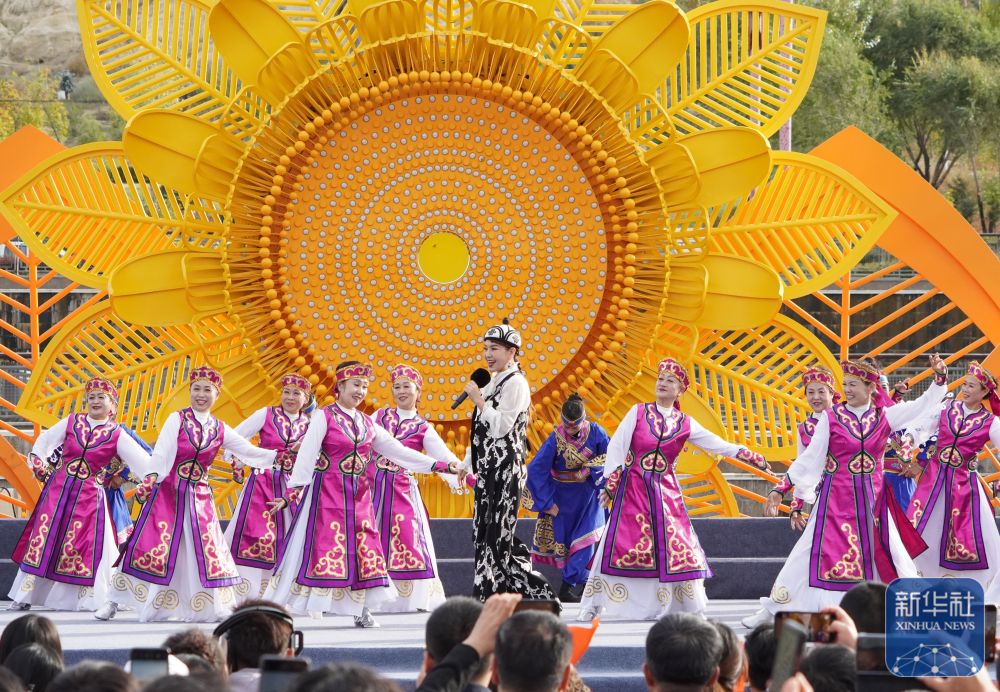 10月2日,以“文化润疆 情暖额河”为主题的《放歌中国》文艺演出在新疆北屯市群众文化活动广场上演。演出以歌言志、以乐传情,向中华人民共和国成立75周年、新疆生产建设兵团成立70周年献礼。新华社发