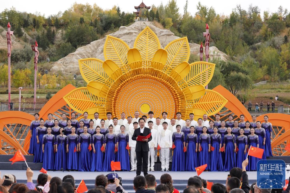 10月2日,歌唱家杨洪基与北屯市干部职工代表共同唱响《我和我的祖国》。