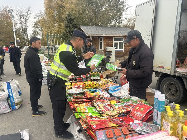 10月27日,布尔津县公安局阔斯特克派出所对赶集场所的食品经营摊点进行检查,进一步规范农村集市食品经营秩序,有效预防食品安全事故的发生。