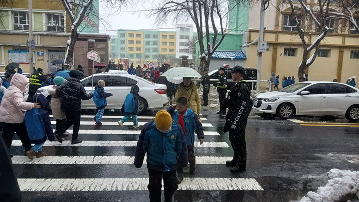 11月11日,阿勒泰市迎来了连续的降雪天气,为避免雪天师生安全事故的发生,切实保障上下学交通安全,阿勒泰市公安局“踏雪而行”,持续做好“护学岗”工作,为雪天出行的广大师生“保驾护航”,筑牢平安路。