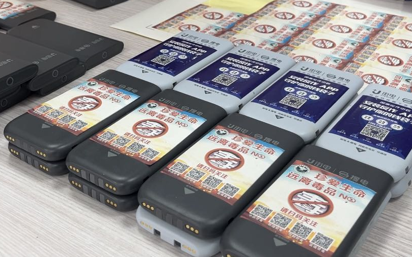 该批充电宝终端设备经过精心设计,表面张贴着“珍爱生命 远离毒品”等醒目的禁毒宣传口号标语,并详细标注了毒品的危害及举报电话等重要内容。同时,充电宝的屏幕上还循环播放着具有本地特色的禁毒宣传视频,生动地展现本地禁毒工作的成效与决心。每一块小小的充电宝被赋予新的使命成为了一张张流动的禁毒宣传名片,让每个来充电的群众都成为禁毒宣传“能手”,在日常生活中随时随地都能接收到禁毒教育。