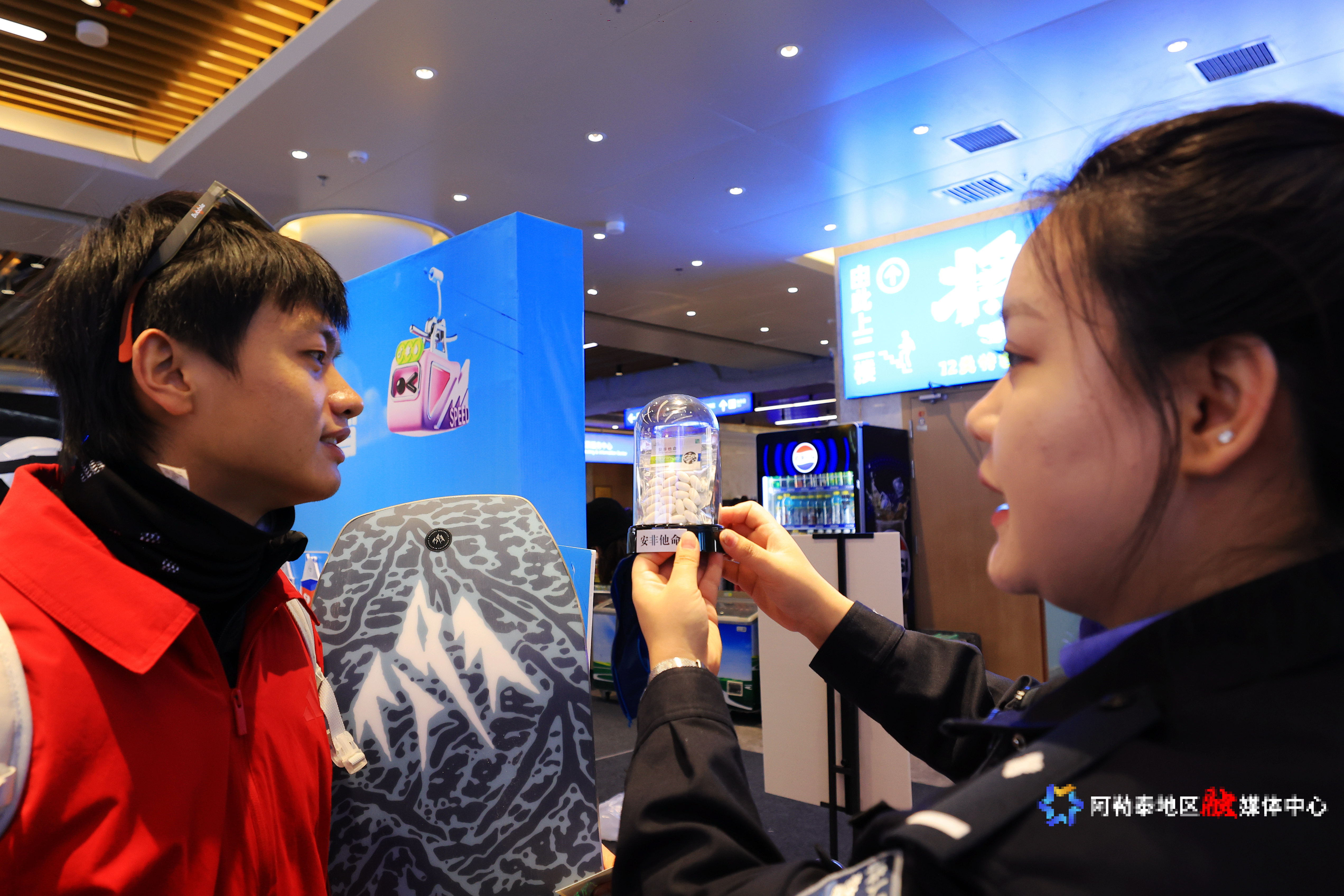 阿勒泰新闻网-阿勒泰地区融媒体中心(记者 阿尔达克·拜斯汗 摄)11月18日,阿勒泰将军山国际滑雪度假区开板。为进一步增强雪友识毒、防毒、拒毒意识,营造抵制毒品、参与禁毒的良好氛围,当日,地区公安局禁毒大队民警走进雪场,向雪友们普及禁毒知识、传播禁毒理念,呼吁广大雪友珍爱生命、远离毒品,争做防毒拒毒的践行者和宣传者。
