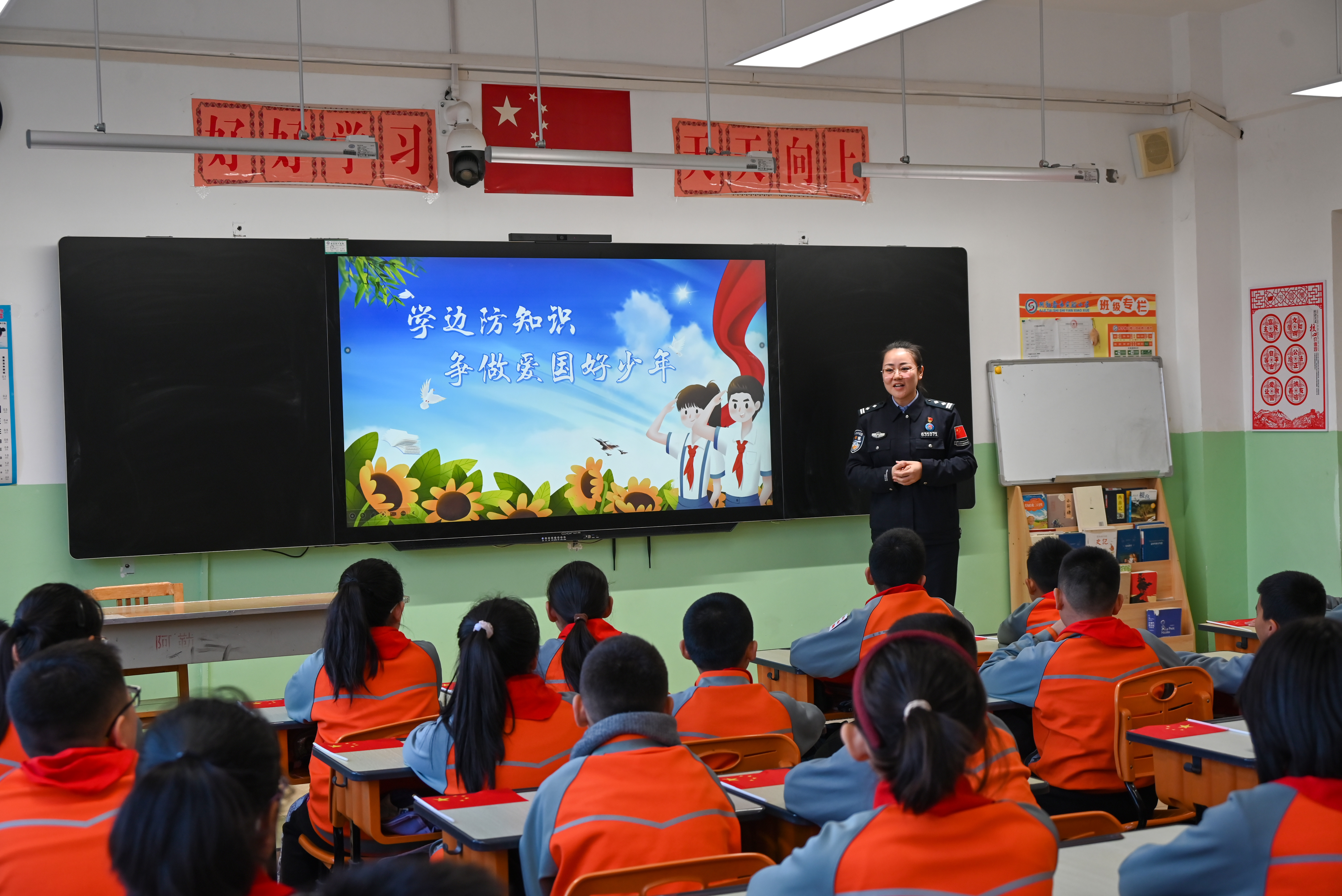阿勒泰新闻网-阿勒泰地区融媒体中心(通讯员 蒋慧芳)11月19日,阿勒泰边境管理支队政治处民警走进阿勒泰市实验小学,开展“戍边故事润童心 爱国情怀伴成长”主题爱国主义教育进校园活动。民警通过播放PPT、互动交流等方式讲述爱国戍边精神,厚植爱国主义情怀。