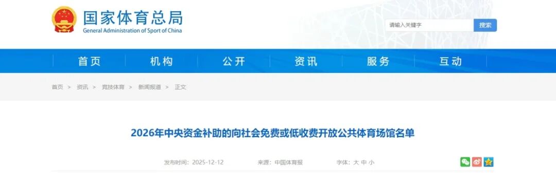 据国家体育总局网站,近日,国家体育总局群众体育司发布通知,公布了《2026年中央资金补助的向社会免费或低收费开放公共体育场馆名单》,新疆(含兵团)共有146个体育场馆获得中央补助。