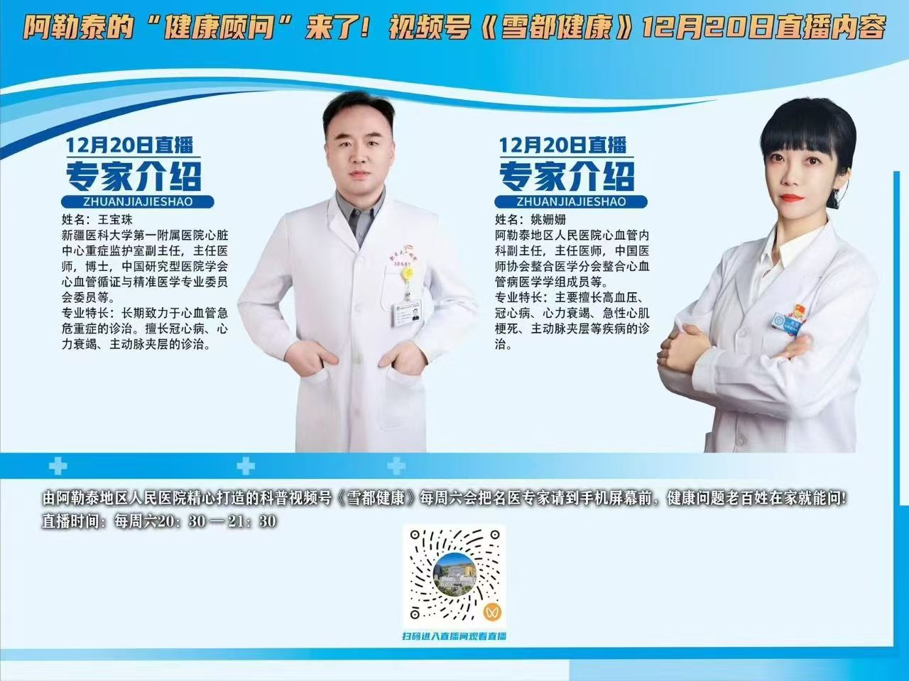 阿勒泰的“健康顾问”来了! 阿勒泰地区人民医院《雪都健康》视频号12月20日直播内容。