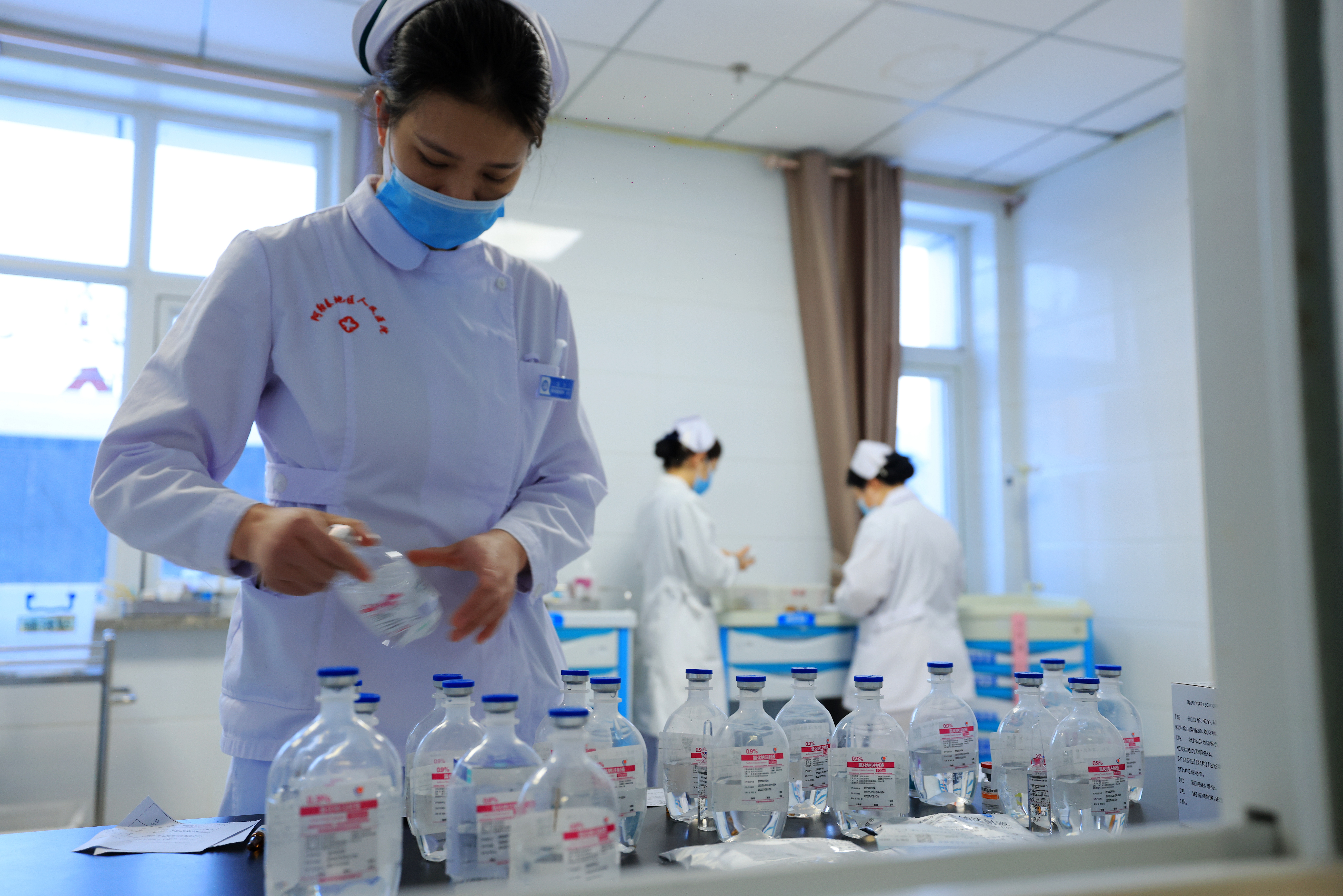 2026年1月1日,阿勒泰地区人民医院的医务工作者坚守岗位。记者 阿尔达克·拜斯汗摄