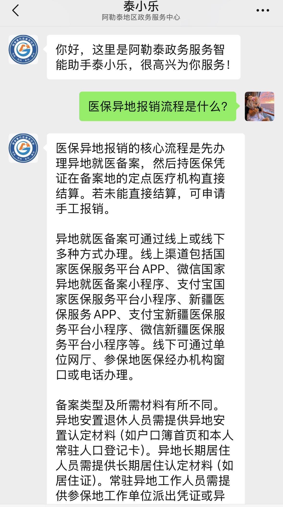 阿勒泰新闻网-阿勒泰地区融媒体中心(记者 古扎丽·阿布都热西提)家住阿勒泰市金山路街道的市民李红近日分享了一段暖心体验:“晚上十点多想起要查询医保异地报销流程,便试着给‘泰小乐’发了消息,没想到很快就收到了步骤说明,比跑大厅窗口省事多了!”这由衷的点赞,正是阿勒泰地区政务服务智能化转型的生动注脚。搭载DeepSeek大模型的“泰小乐”政务服务机器人,凭借7*24小时全天候在线服务,深度融入全地区企业群众日常办事场景,让“政策秒懂、业务快办”成为阿勒泰政务服务新标识。
