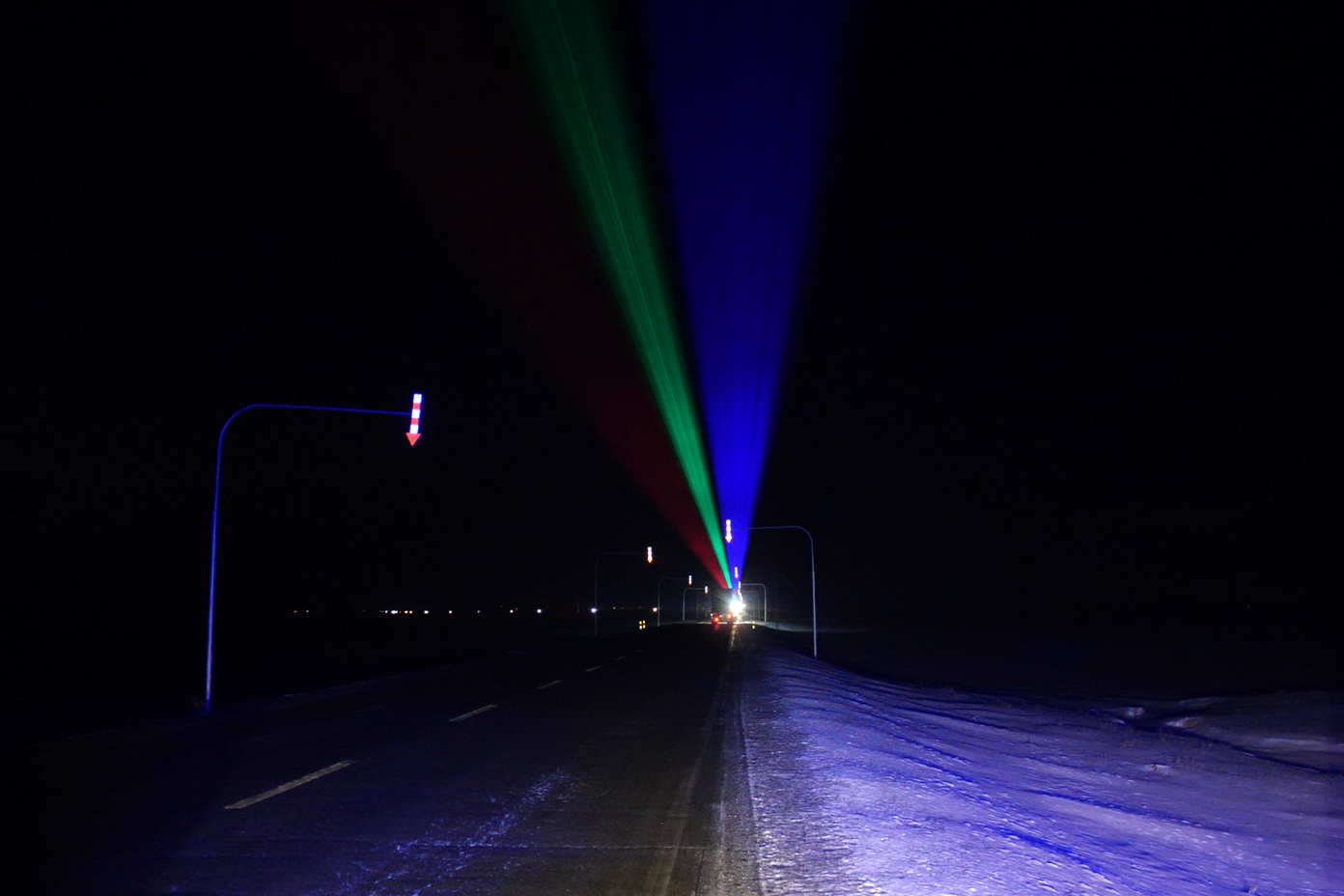 阿勒泰新闻网-阿勒泰地区融媒体中心(记者 杨玮璇)“前方光束闪烁,一下子就清醒了!”1月17日深夜,行驶在S228线上的货车司机王峰,看着前方道路上空动态交织的激光束,下意识握紧方向盘调整行车状态。入冬后,青河县夜间气温骤降,风吹雪与团雾频发,这道穿透夜色的“安全光盾”,正是青河县公安局交通管理大队最新投用的防疲劳激光灯,为冬季夜间行车筑起一道安全防线。