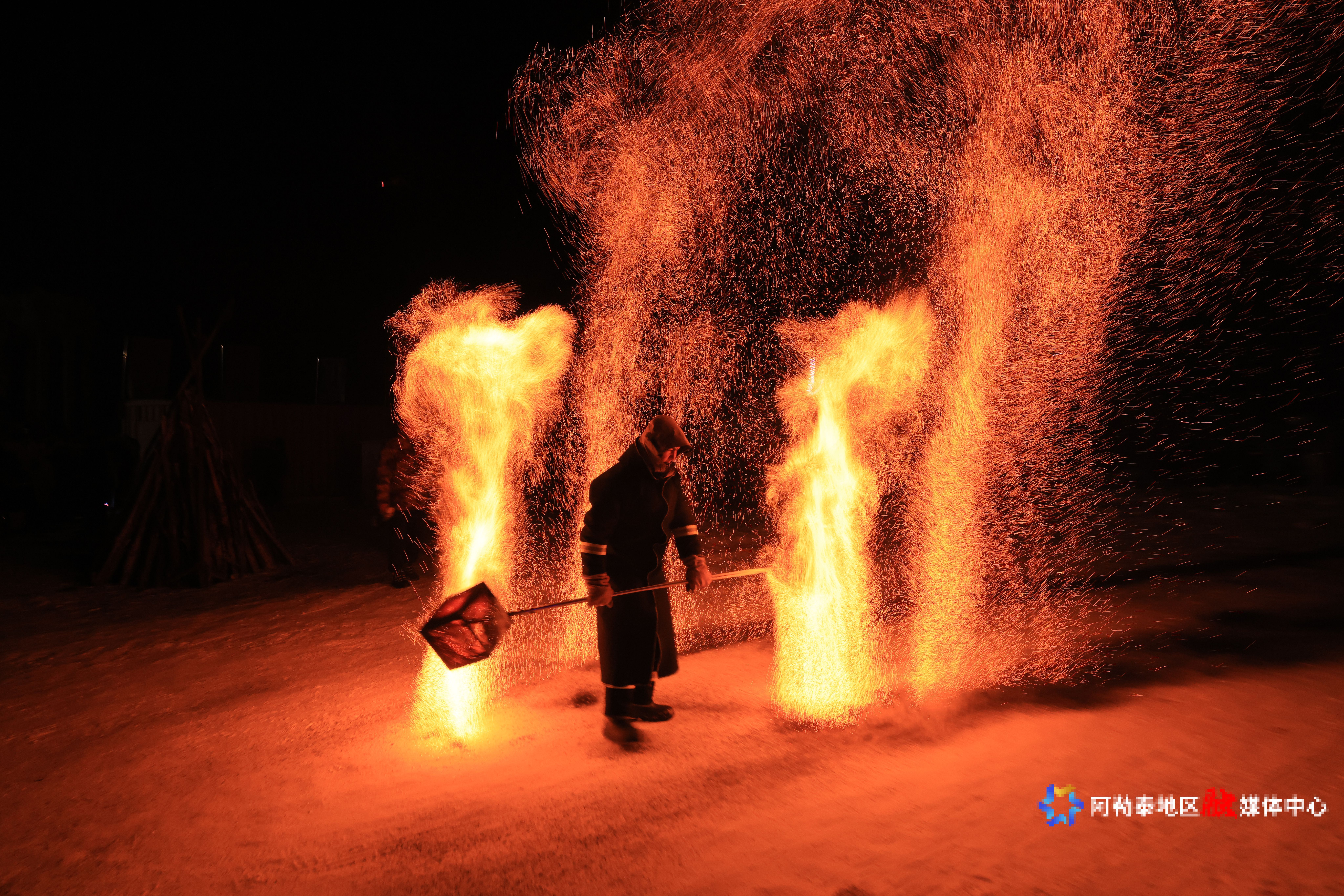 烟火气十足的配套活动,成为本届冬捕节圈粉的重要加分项。这里既有冬泳挑战赛、雪地足球、冰上龙舟等动感竞技项目,又有民族家访、刺绣展示等民俗体验,还有老少皆宜的打雪仗、马拉爬犁、冰浮体验等趣味活动。非遗打铁花表演惊艳登场,万千铁花如星河倾泻,搭配梦幻灯光秀、篝火蹦迪与烟花盛宴,将冰湖夜空装扮得绚烂夺目,让游客在严寒中尽享冬日狂欢。