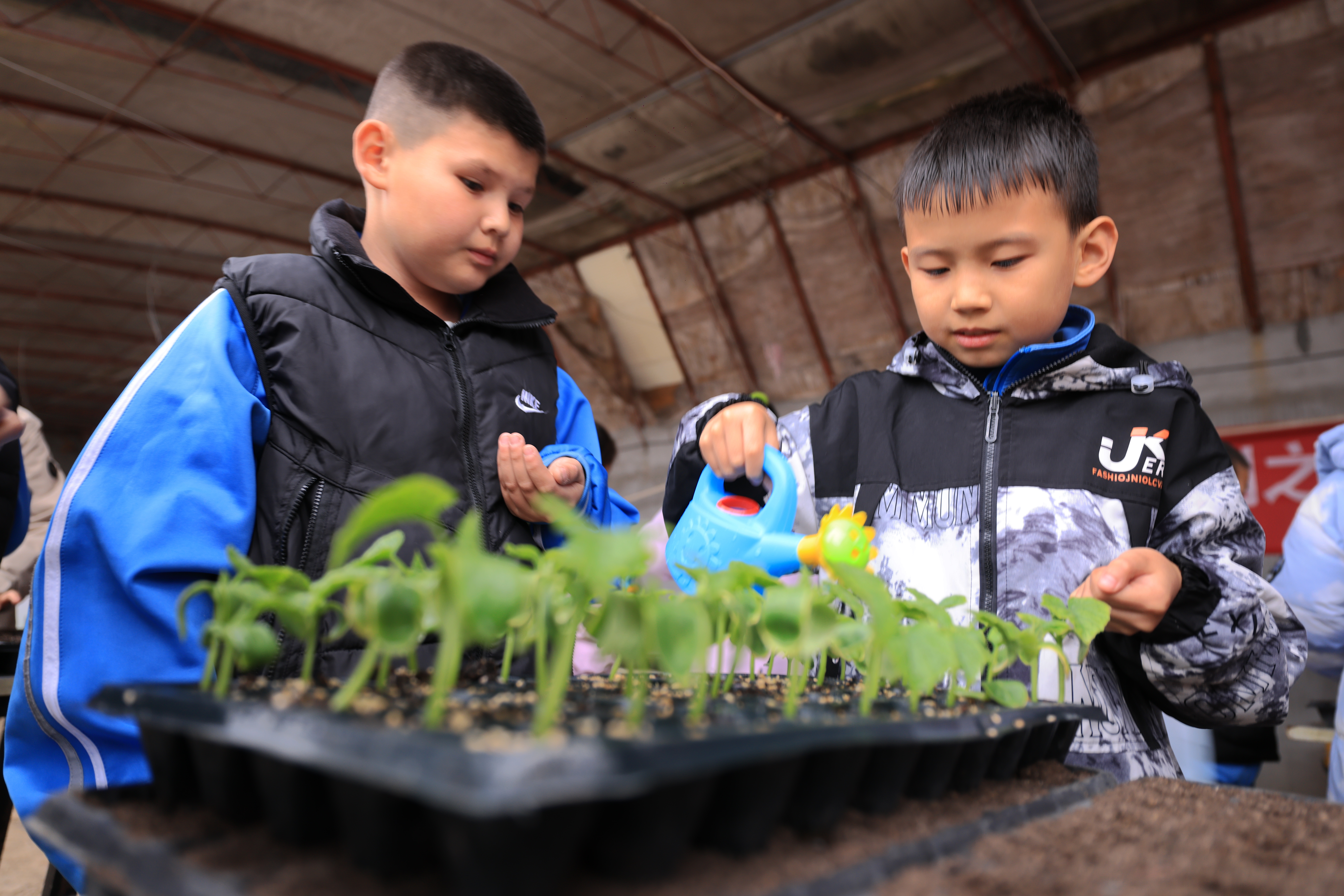 活动中,孩子们在农技人员的指导下学习松土、播种,聆听农业科普讲解。一粒粒种子、一株株幼苗,成为生动的科普教材,孩子们“零距离”接触现代农业,在实践中增长知识、亲近自然,享受大棚里的“耕读童趣”。