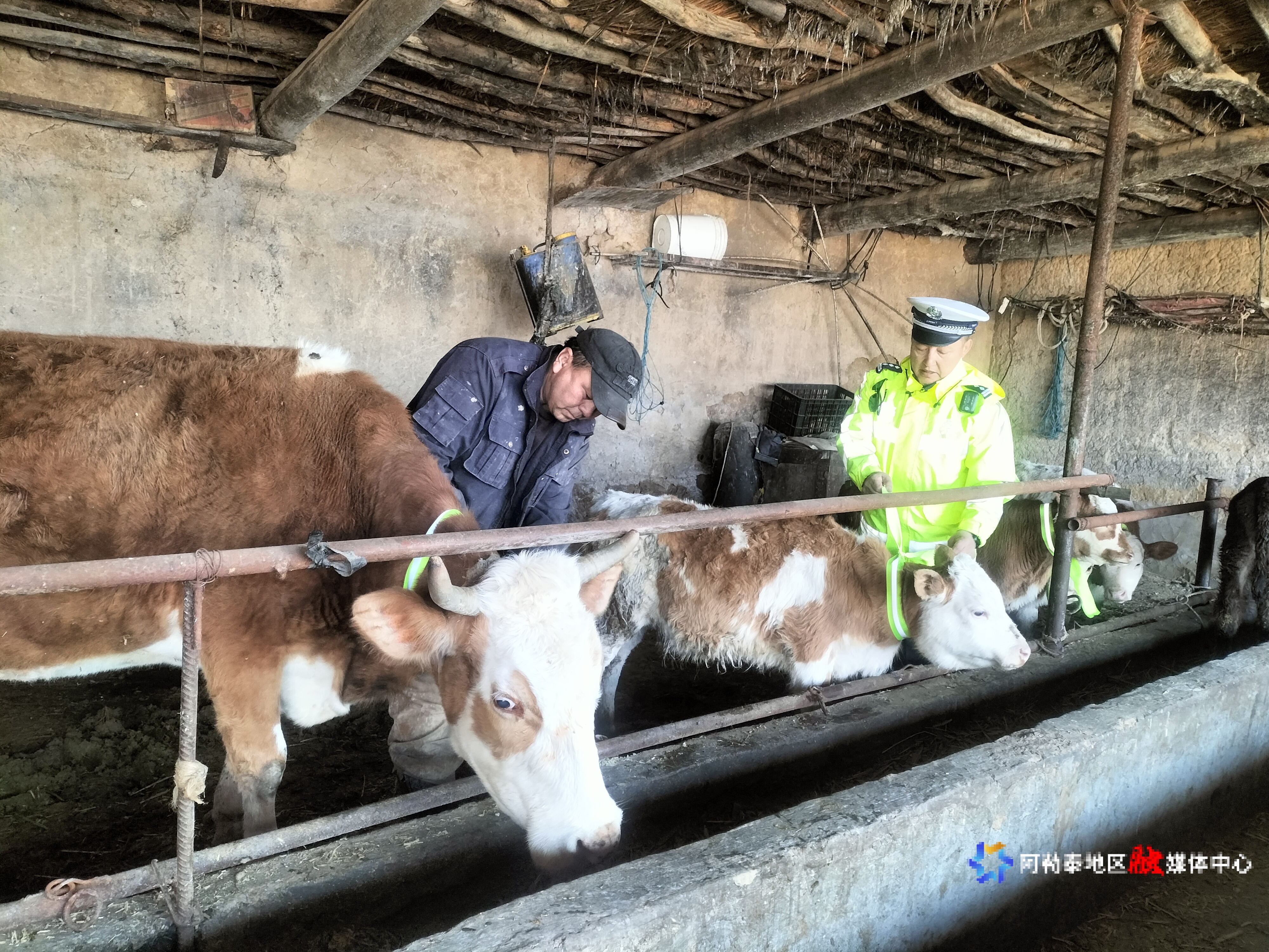 阿勒泰新闻网-阿勒泰地区融媒体中心(记者 杨玮璇)3月31日,阿勒泰市公安局交通管理大队联合阿勒泰市阿苇滩镇农业发展服务中心兽医站,以春季动物疫病防控为契机,在辖区牧区同步开展牲畜反光带佩戴便民服务活动,将防疫保障与道路安全防护精准结合,为牧民群众生产生活筑牢双重防线。