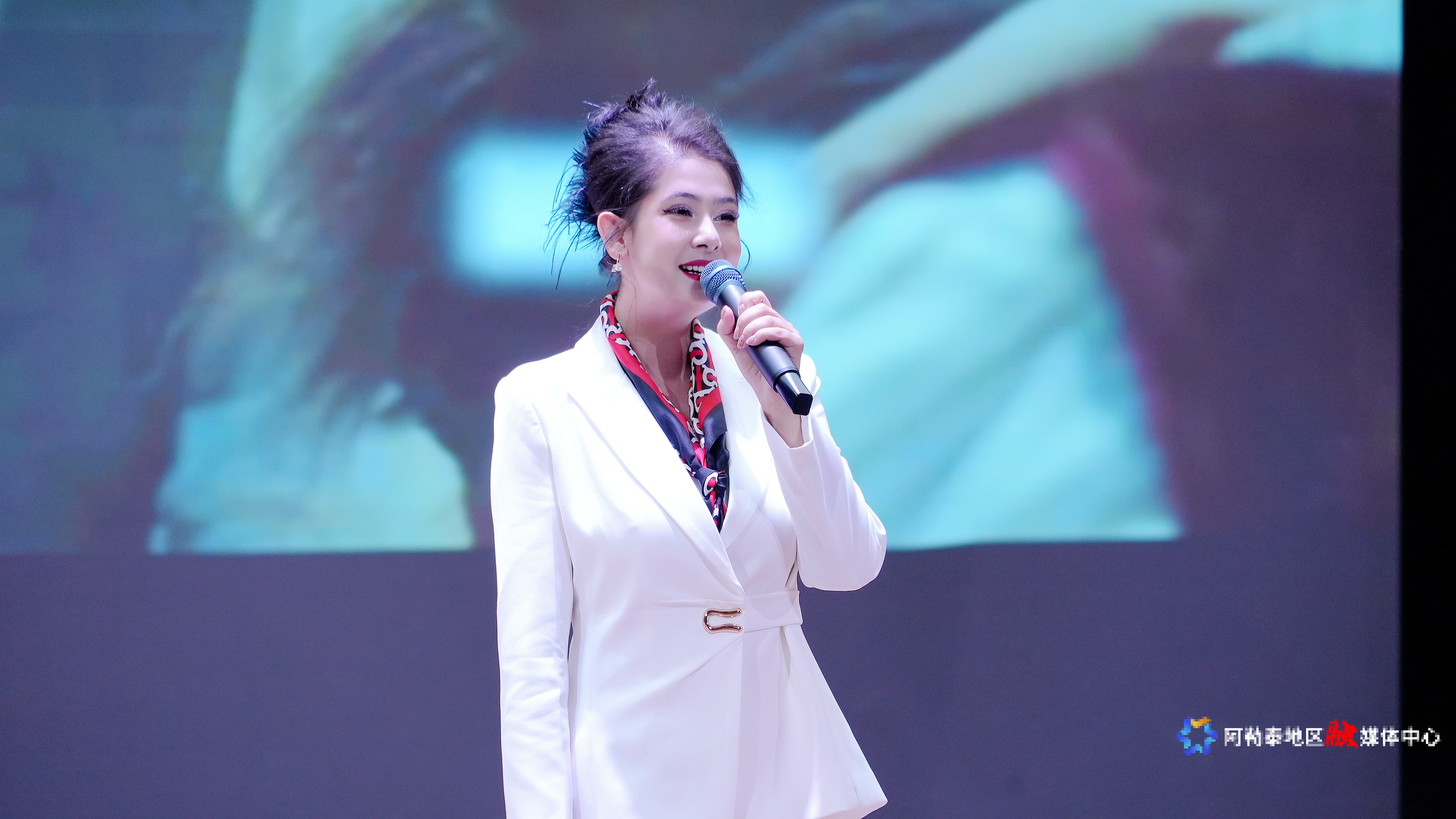 铸牢中华民族共同体意识、建设社会主义现代化新疆“雪都石榴红”宣讲团赴基层巡回宣讲活动现场,阿勒泰地区二中支教老师刘悦雯正在宣讲。