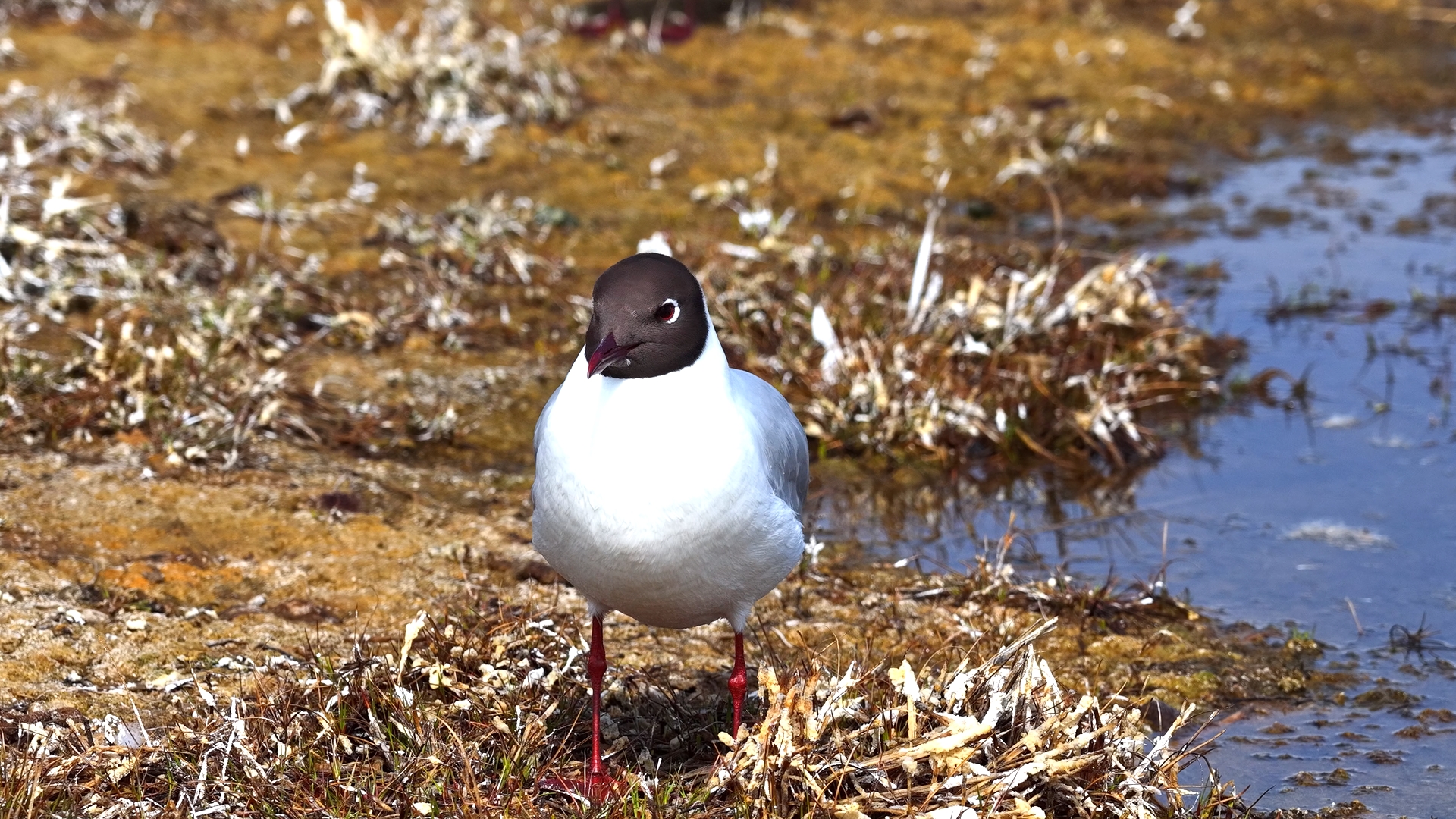 春水初醒的滩涂上,红嘴鸥静静伫立,红喙白羽映着天光,定格了阿勒泰湿地的温柔瞬间。