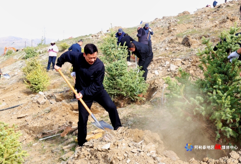 地区四套班子有关领导,地区和阿勒泰市部分干部职工等参加春季全民义务植树活动。