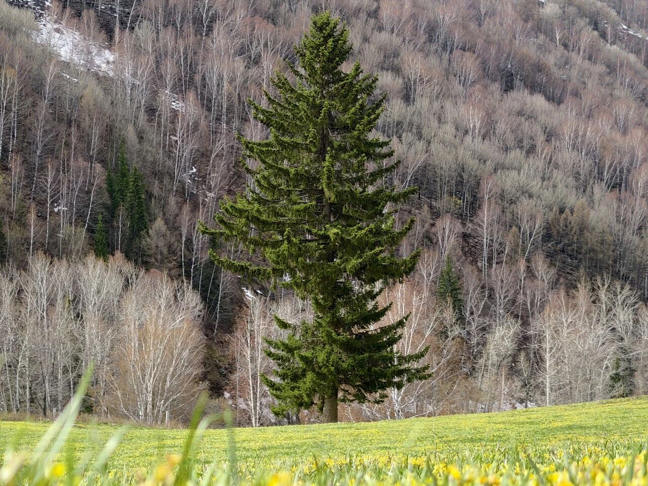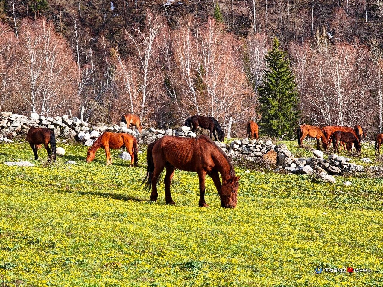 在翠微观景平台,暖阳轻抚大地,金黄野花铺满草甸,白桦林抽芽吐绿,山雀穿梭其间。游人驻足,或赏花留影,或静听溪流潺潺,满目皆是生机盎然的春日画卷。远处,雪山银峰若隐若现,与近处春色遥相呼应,恍若时空交错。