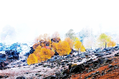 山下,超市的老板娘阿依夏木,总有她的办法——印着霜冻预警的旧报纸,经她双手轻巧一折,便成了包裹马奶糖的糖纸。油墨铅字在锡纸上慢慢晕开,洇出如雨滴的痕迹。孩子们嚼着印有卫星云图的泡泡糖,鼓着腮帮吹出圆滚滚的泡泡,在阳光下闪着细碎的光,清晰的蓝色等压线轻轻延展,像在他们掌心托着一条微缩的银河。