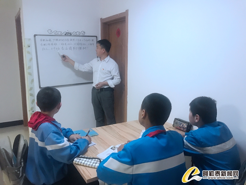 如今,补习班已开设4月有余。援疆宿舍楼位于小区居民楼内,每天孩子们按时来援疆楼302室补习功课。青河镇第一小学六年级学生叶森肯来德,因为父母忙于工作,无暇他的学习,家离302室不足百米,所以叶森肯来德经常过来补习功课。