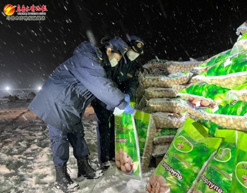 3月22日 霍尔果斯海关关员对出口果蔬进行高效监管。 通讯员黄宇晖摄