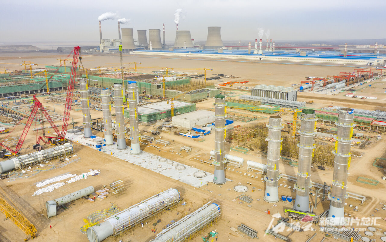 3月17日拍摄的新疆其亚硅业有限公司一期年产10万吨多晶硅及配套设施项目建设现场(无人机拍摄)。该项目位于新疆准东经济技术开发区火烧山产业园,一期项目投产后可实现工业总产值145亿元。何龙 摄