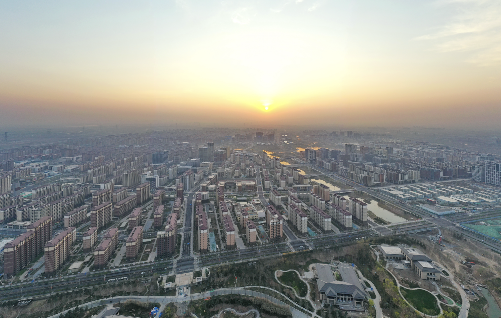 3月31日在雄安新区拍摄的日出(无人机照片)。
