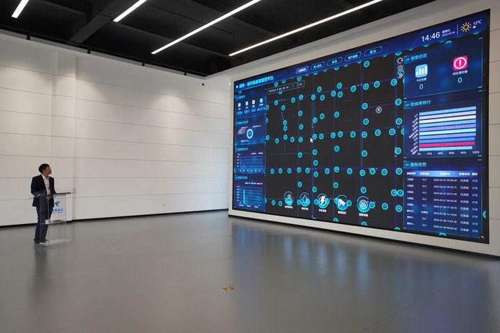 河北雄安新区中国电信智慧城市产业园的工作人员展示数字道路运营系统(3月24日摄)。