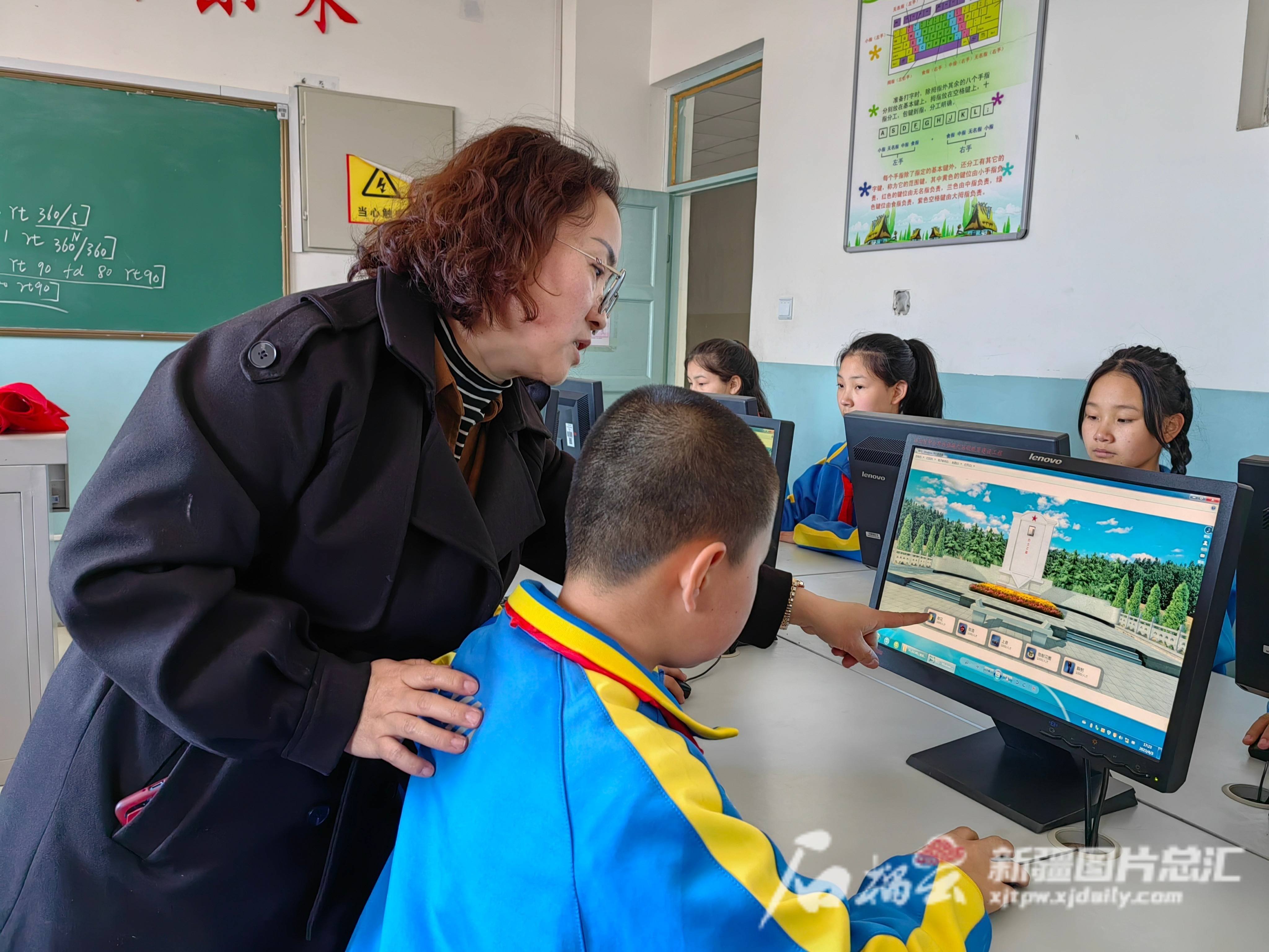 4月3日,乌苏市第四小学驻皇宫镇泉水沟村“访惠聚”工作队队员在皇宫镇中心学校指导学生网上祭奠革命先烈。刘雨摄
