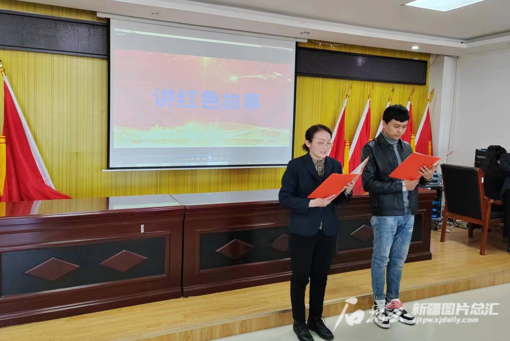 4月3日,乌苏市卫生健康委员会驻南苑街道军民路社区“访惠聚”工作队开展“缅怀先烈 致敬英雄”活动,社区干部正在讲红色故事。康晓霞摄