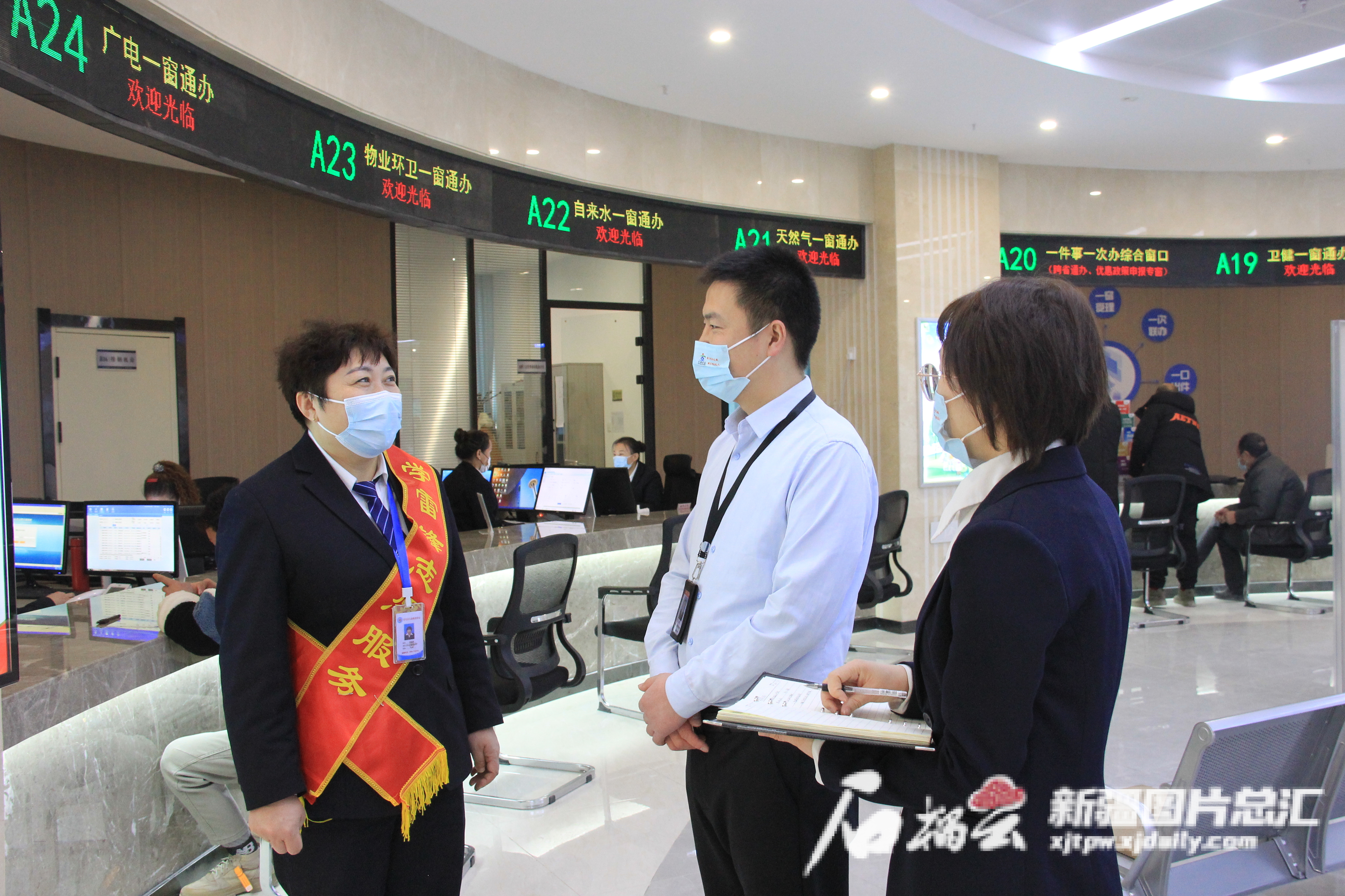 若羌县纪委监委干部在该县政务服务中心监督检查优化营商环境举措落实情况。王芝海摄