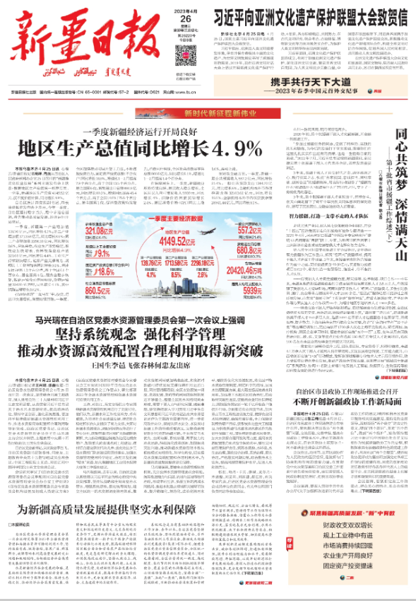 一季度新疆经济运行开局良好 全区地区生产总值同比增长4.9%