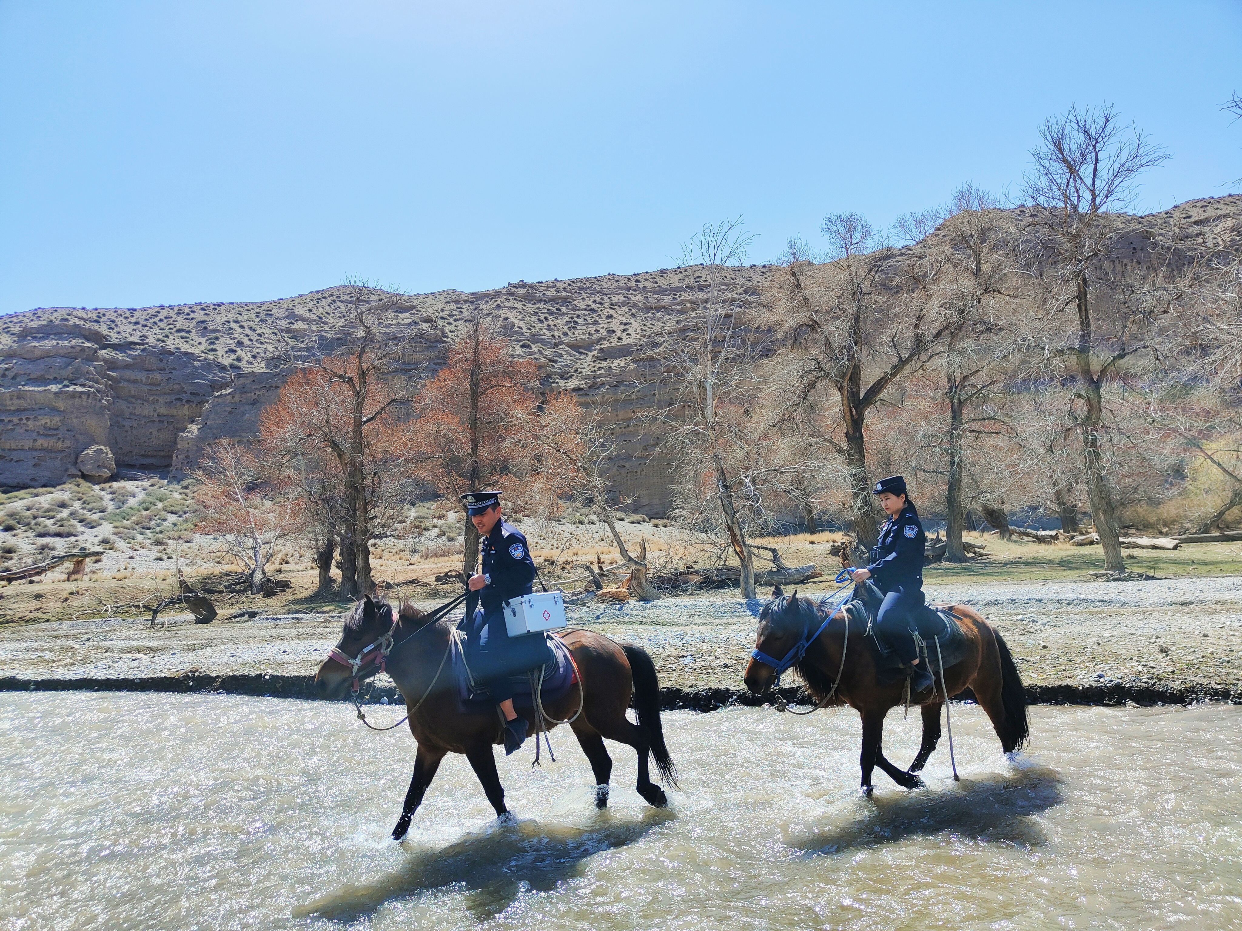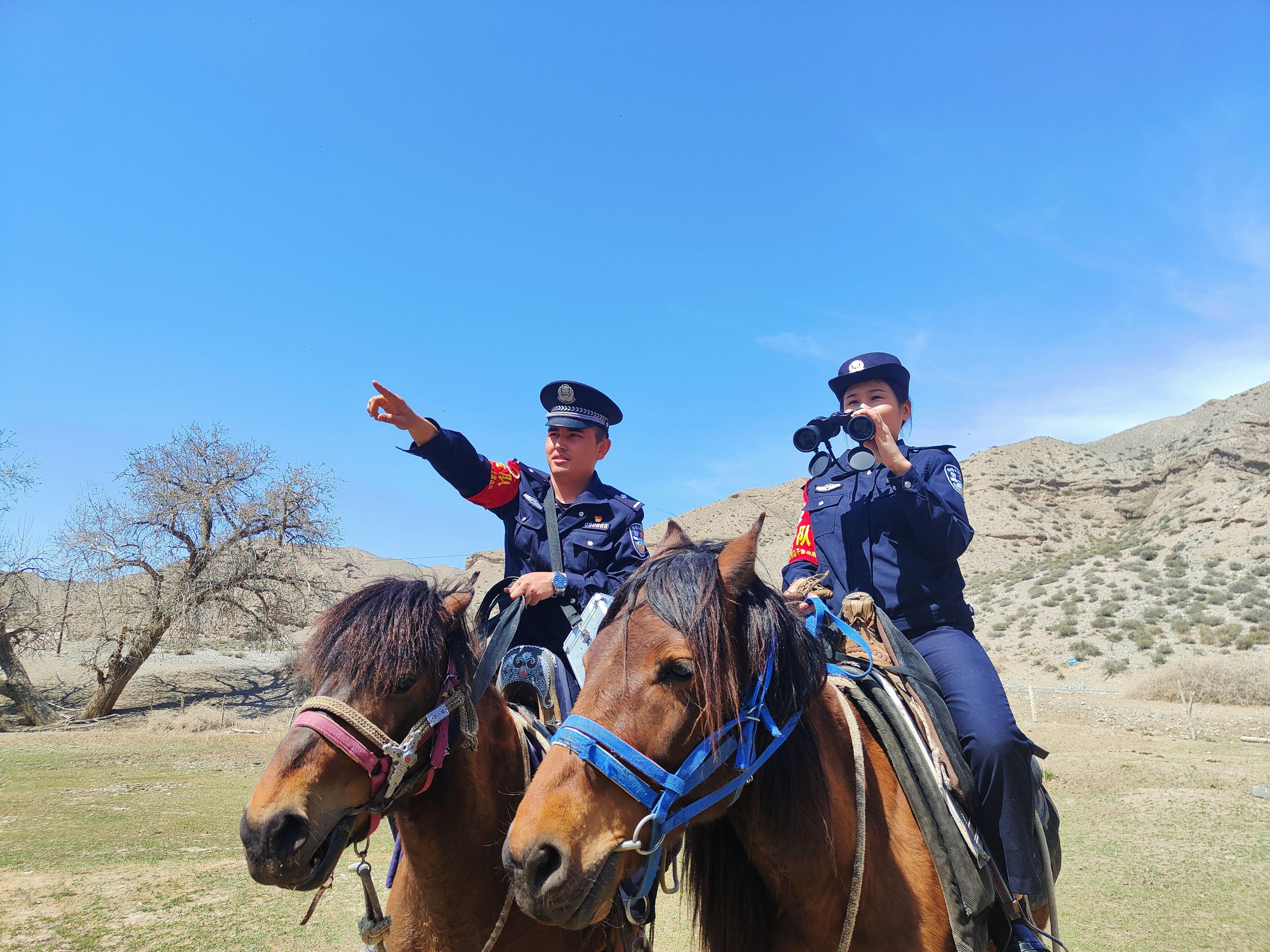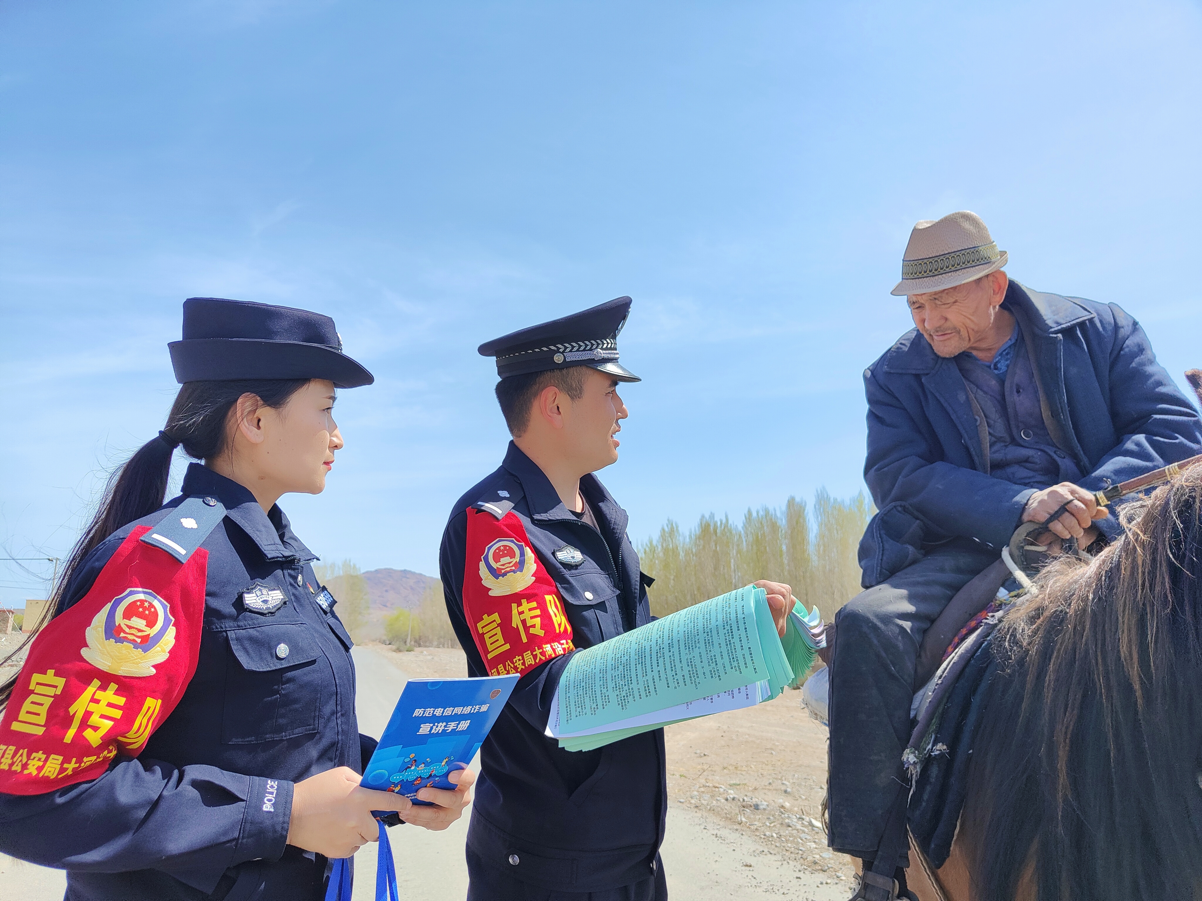 4月28日,在精河县大河沿子镇呼苏木奇村山区林业景点,精河县公安局大河沿子派出所“马背上的宣传队”格外引人注目,他们穿梭在山林中,向当地牧民和游客普法。