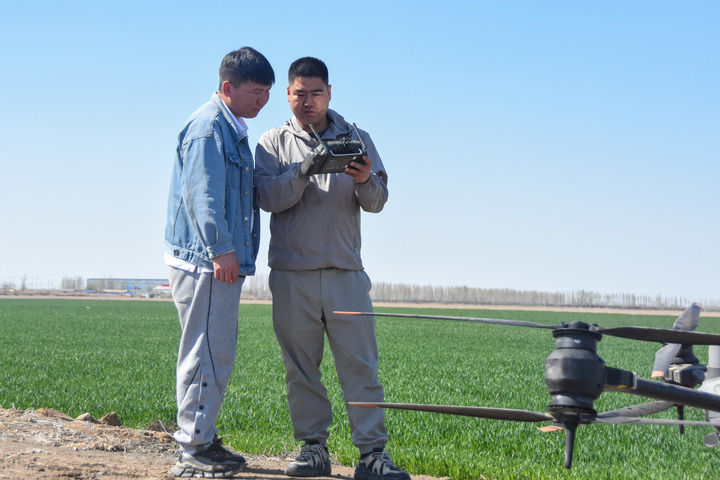 随着农业现代化的推进,杨皓然的“新农人”团队也茁壮成长。团队的13人都是“90后”。“我们有汉族、回族、哈萨克族等,是一个多民族大家庭。”农忙时,他们在田间地头到处奔波,忙得脚不沾地;农闲时,他们给当地农民做飞手培训。杨皓然告诉记者,现在农用无人机飞手比较吃香。“一架载荷40公斤的无人机,一天可飞完1000亩地。一亩地可挣4元,有人一年挣了20多万。”